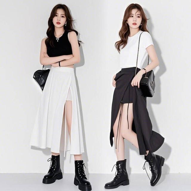 裙子半身裙長裙開叉半身裙女夏季時尚顯高顯瘦裙子帶安全褲假兩件裙褲垂感長裙女韓版顯瘦直筒高腰百搭通勤遮肉日常小個子長裙