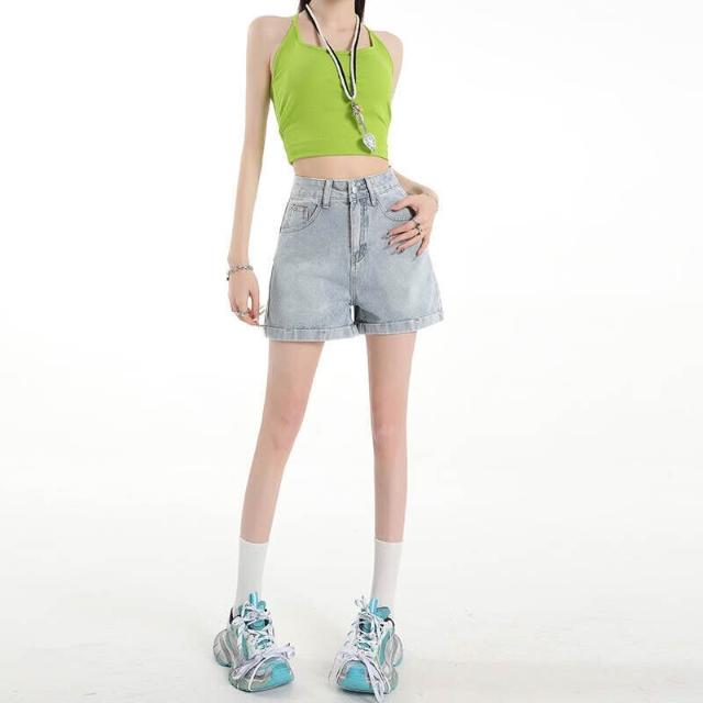 短褲休閒褲牛仔褲刺繡牛仔短褲女夏季年卷邊ins高腰顯瘦a字小個子外穿熱褲百搭牛仔短褲女韓版高腰顯瘦修身彈力通勤日常遮肉小個子短褲
