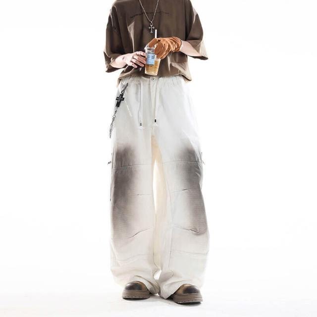 牛仔褲彎刀褲傘兵褲男寬松直筒工裝褲多口袋抽繩束腰漸變色休閑長褲彎刀褲直筒褲闊腿褲緊身褲修身褲煙管褲喇叭褲微喇褲寬鬆褲九分褲長褲