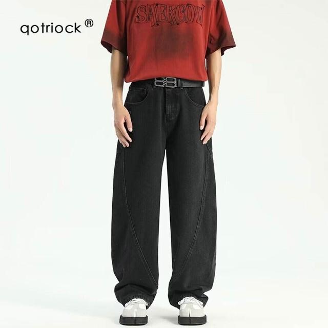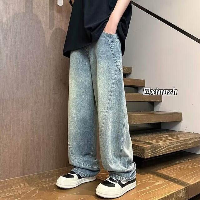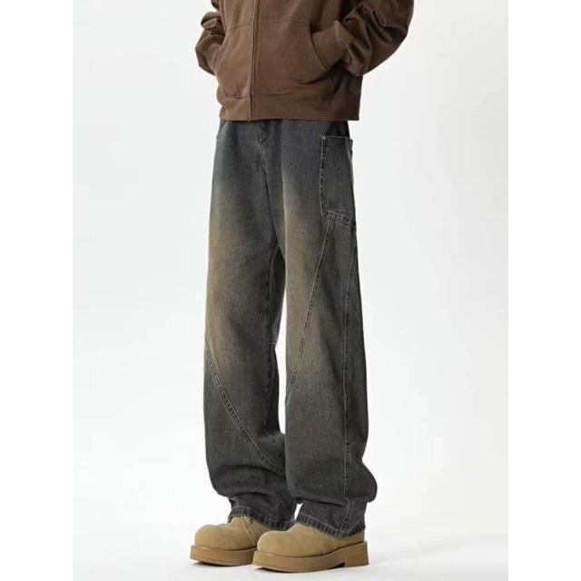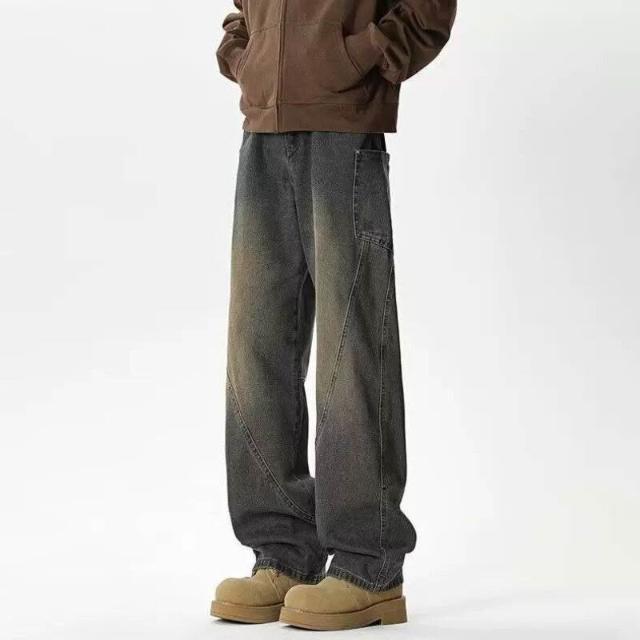 牛仔褲彎刀褲男女同款寬松直筒牛仔褲男春秋復古做舊漸變多口袋休閑闊腿長褲彎刀褲直筒褲闊腿褲緊身褲修身褲煙管褲喇叭褲微喇褲寬鬆褲九分褲長褲