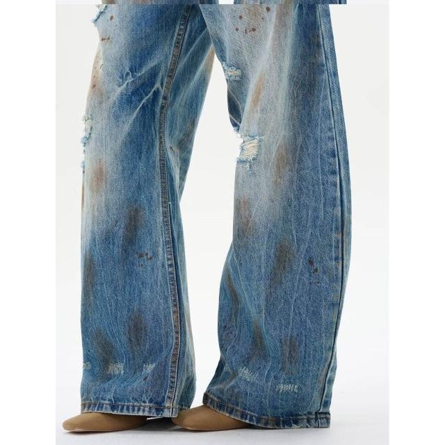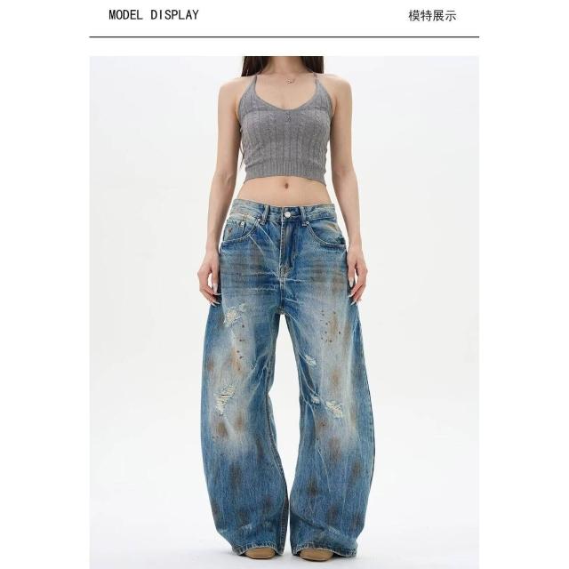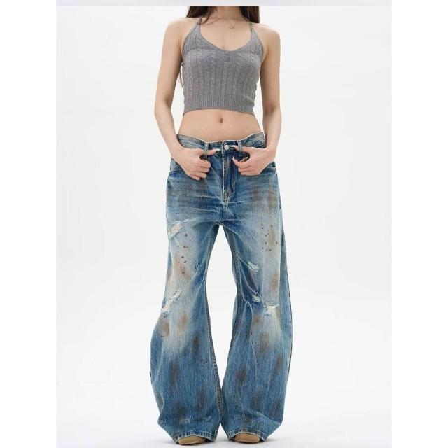 牛仔褲彎刀褲男女同款復古藍做舊破洞牛仔褲女夏季寬松闊腿顯瘦高腰老爹褲彎刀褲直筒褲闊腿褲緊身褲修身褲煙管褲喇叭褲微喇褲寬鬆褲九分褲長褲