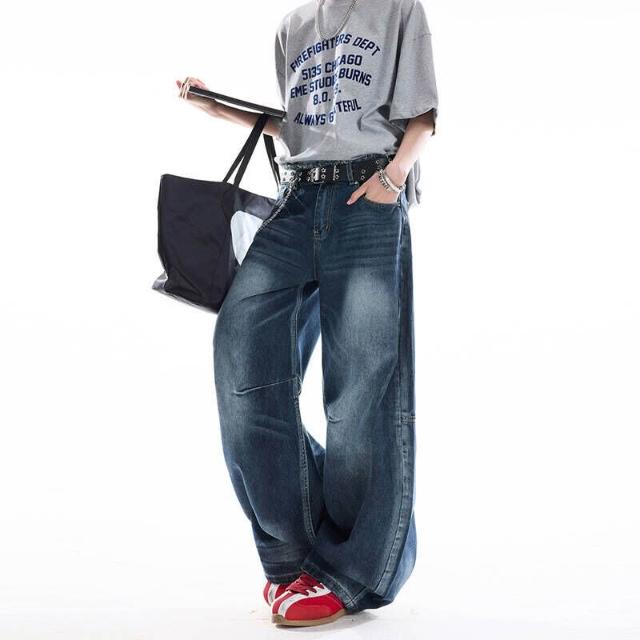 牛仔褲彎刀褲男女同款寬松闊腿牛仔褲男潮流復古水洗做舊百搭直筒牛仔長褲春秋彎刀褲直筒褲闊腿褲緊身褲修身褲煙管褲喇叭褲微喇褲寬鬆褲九分褲長褲
