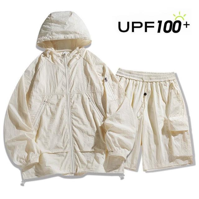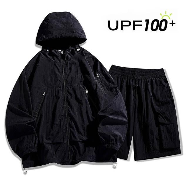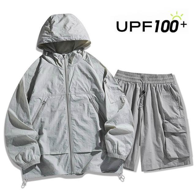 運動套裝寬鬆顯瘦速乾透氣兩件式短袖休閒健身短褲休閑運動風防曬衣套裝情侶運動套裝潮套裝男寬松短褲皮膚衣防曬衣套裝速乾衣空調服透氣防曬防紫外線涼感