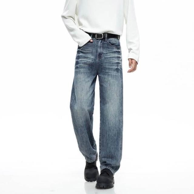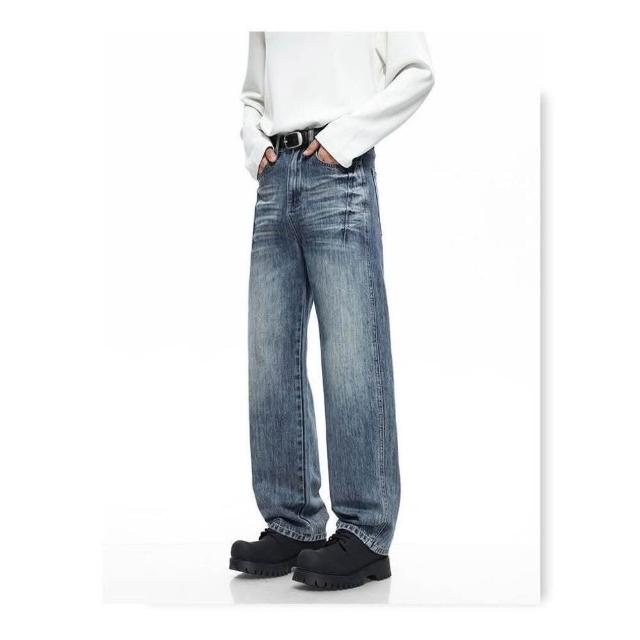 彎刀褲牛仔褲 牛仔褲男秋冬潮流高品質美式復古水洗長褲男士百搭寬松直筒褲男潮牌窄版時尚牛仔長褲機能寬褲休閒褲耐磨登山褲垂感韓國彎刀褲