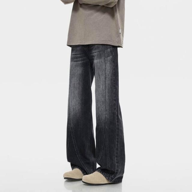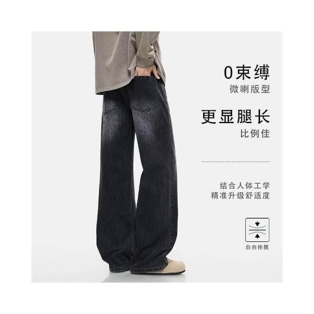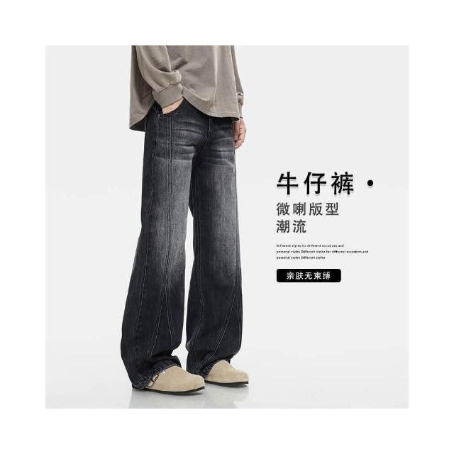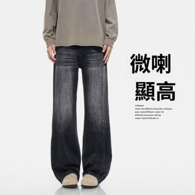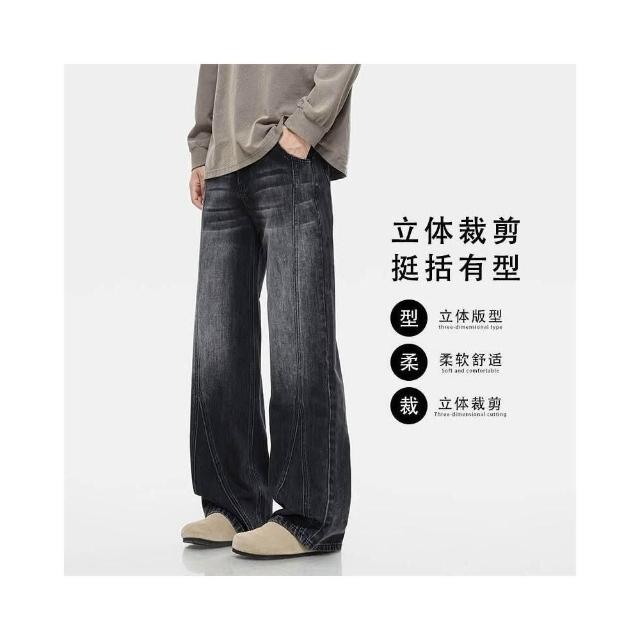 彎刀褲牛仔褲 休閑褲男美式復古水洗小眾設計感高檔牛仔褲男女寬松直筒闊腿秋冬舒適百搭牛仔長褲防風保暖褲闊腿工作褲寬鬆運動褲工裝褲低腰水洗