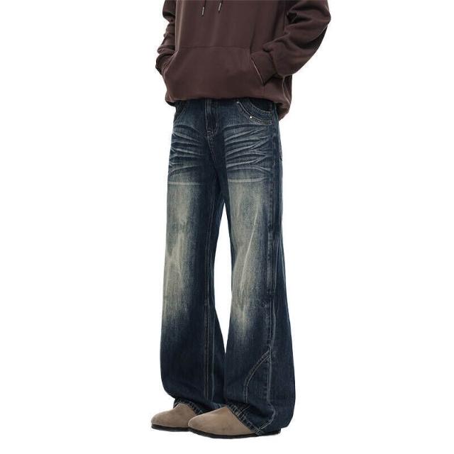 彎刀褲牛仔褲 休閑褲男牛仔褲美式復古水洗男女直筒寬松彎刀闊腿情侶褲潮牌痞帥高級感潮流百搭時尚長褲寬鬆運動褲工裝褲低腰水洗機能寬褲大尺碼