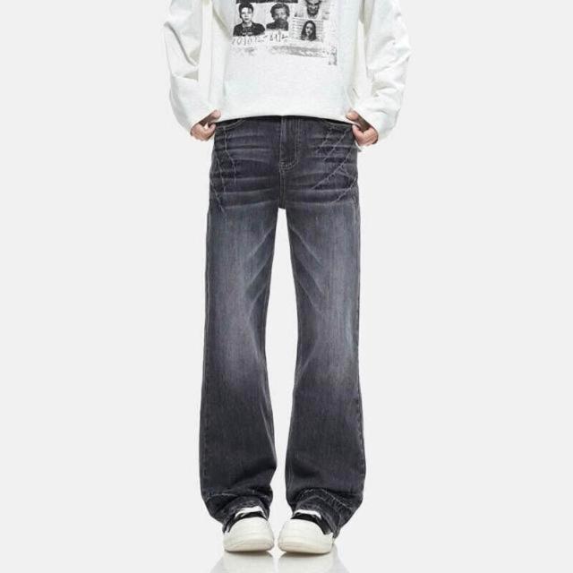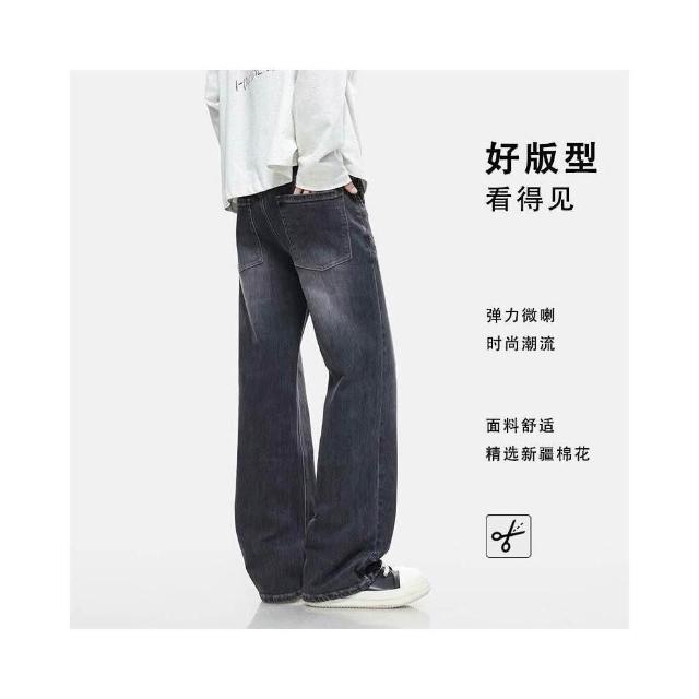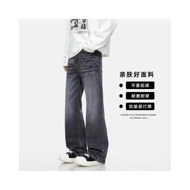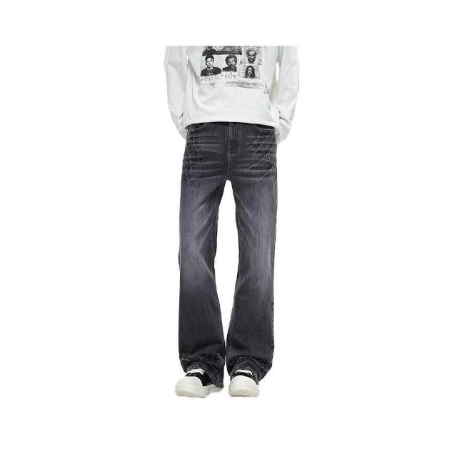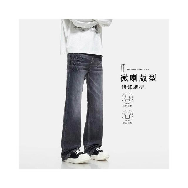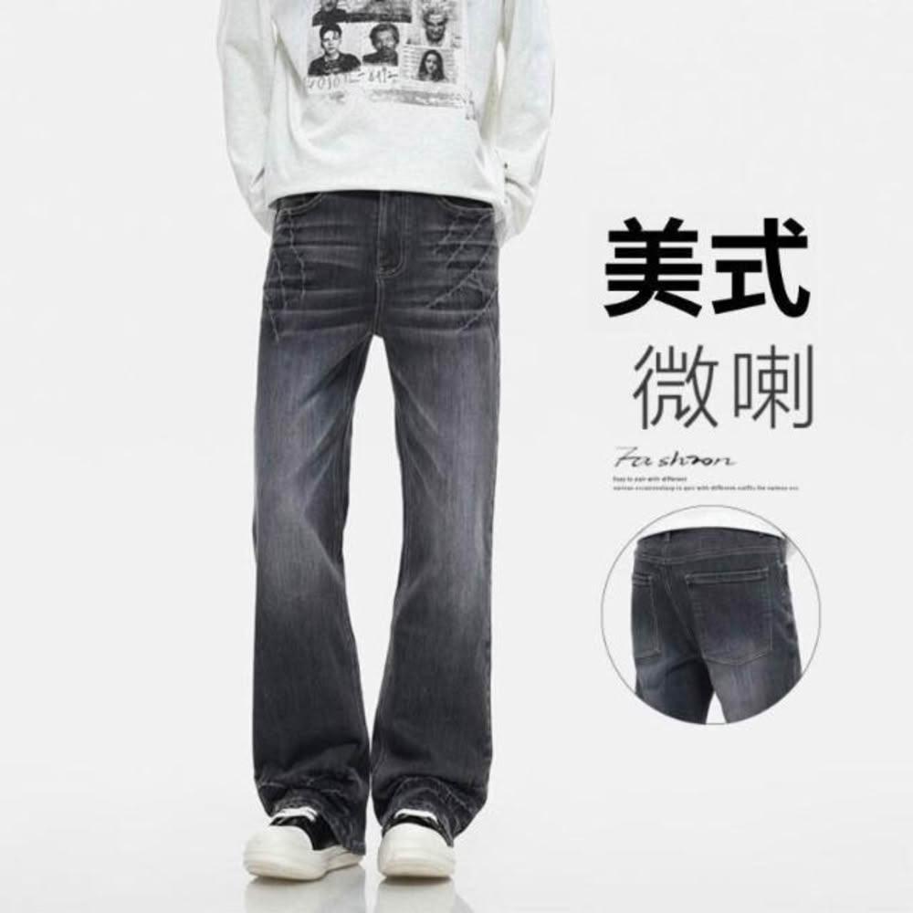 彎刀褲牛仔褲 微喇牛仔褲閃電紋男潮i流水洗長褲男士秋冬復古寬松休閑褲男直筒顯瘦高街痞帥長褲運動工作褲工裝褲休閒褲防風保暖褲彎刀褲