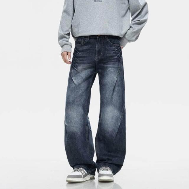 彎刀褲牛仔褲 休閑褲美式復古廓形牛仔褲男時尚秋季高街水洗做舊潮牌直筒褲質感寬松長褲子男潮流時尚大尺碼休閒褲耐磨登山褲秋冬垂感韓國彎刀褲