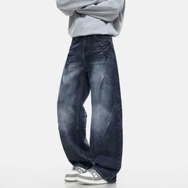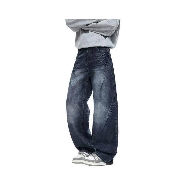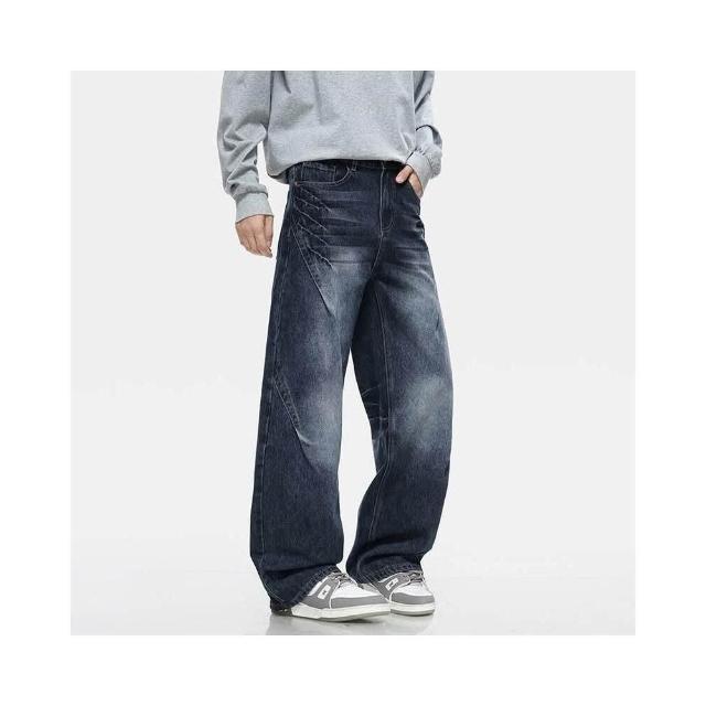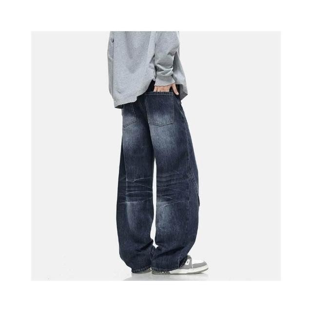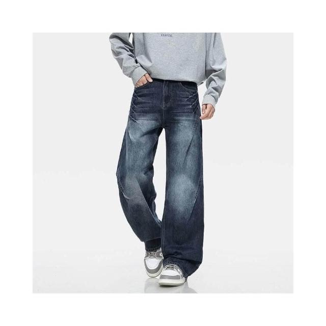 彎刀褲牛仔褲 休閑褲美式復古廓形牛仔褲男時尚秋季高街水洗做舊潮牌直筒褲質感寬松長褲子男潮流時尚大尺碼休閒褲耐磨登山褲秋冬垂感韓國彎刀褲