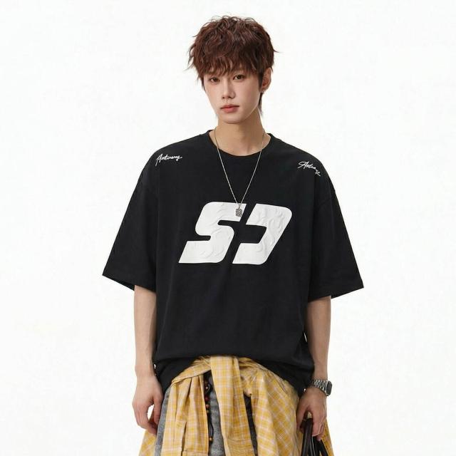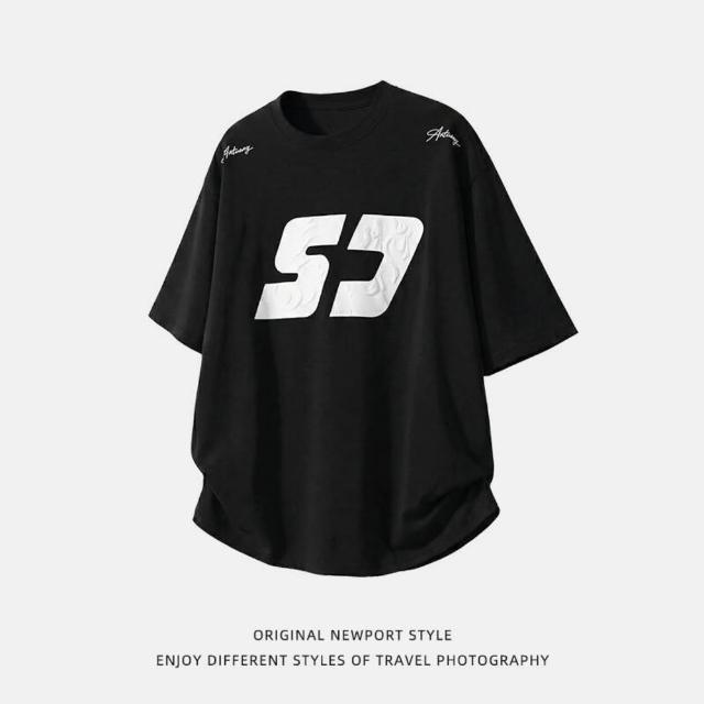 涼感衣短袖T恤男韓版寬鬆純棉透氣涼感夏季休閒百搭圓領上衣撞色印花純棉短袖T恤男夏季高街美式情侶半袖潮牌質感寬松體恤衫POLO衫情侶上衣男女同款吸濕排汗親膚T恤抗起球