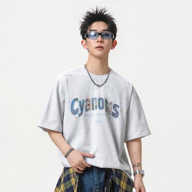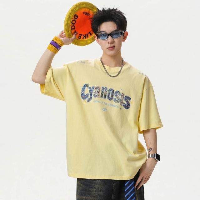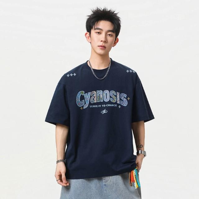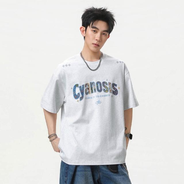 涼感衣短袖T恤男韓版寬鬆純棉透氣涼感夏季休閒百搭圓領上衣美式刺繡貼布純棉短袖T恤男夏季款情侶寬松休閑百搭半袖體恤POLO衫情侶上衣男女同款吸濕排汗親膚T恤抗起球