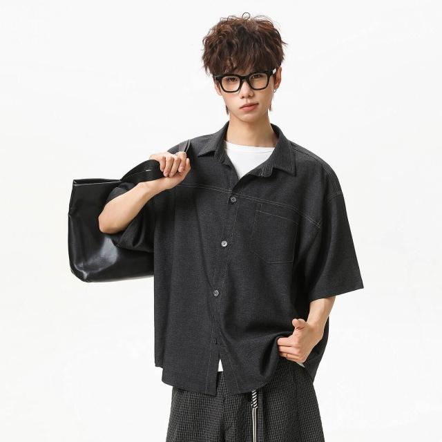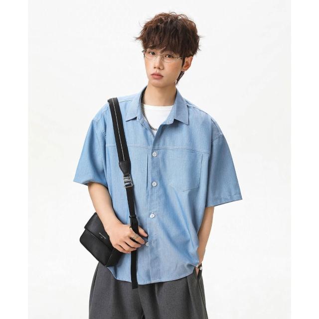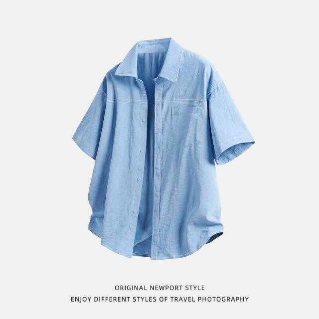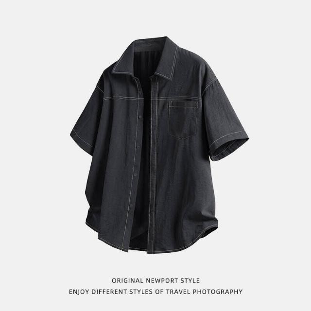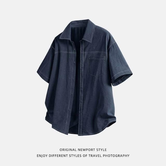 涼感衣短袖T恤男韓版寬鬆純棉透氣涼感夏季休閒百搭圓領上衣撞色明線仿牛仔短袖襯衫透氣寬松工裝風休閑襯衣POLO衫情侶上衣男女同款吸濕排汗親膚T恤抗起球