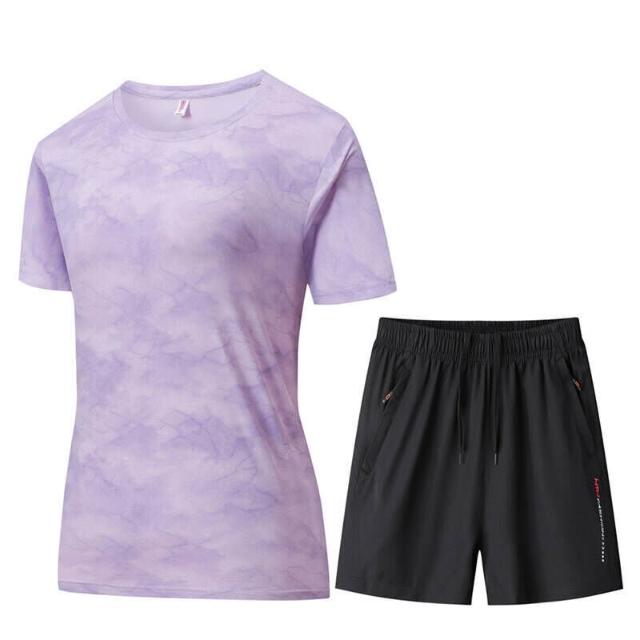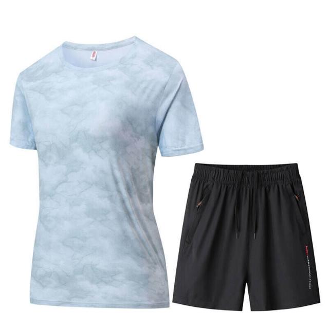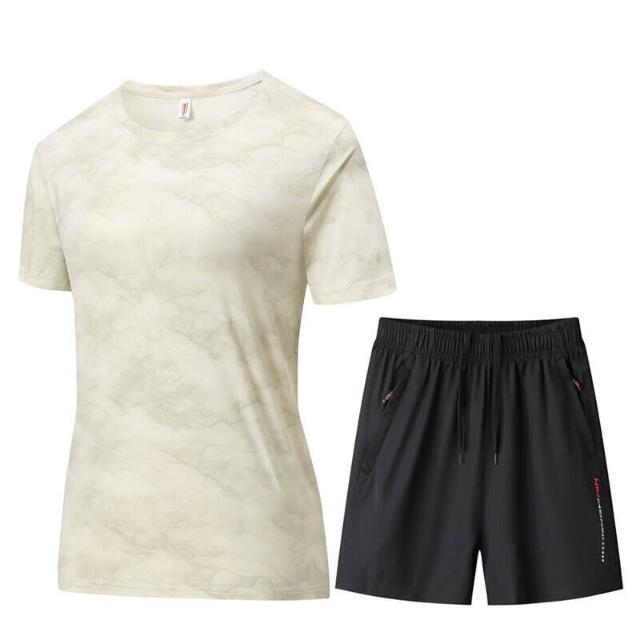 涼感衣冰絲衣女套裝上衣短褲速乾衣套裝寬褲運動褲機能透氣大尺碼短袖短褲套裝休閒短袖短褲兩件式套裝居家舒適套裝通勤速幹運動服迷彩印花圓領短袖t恤短褲兩件套