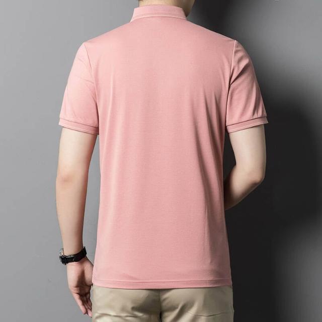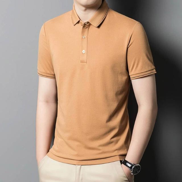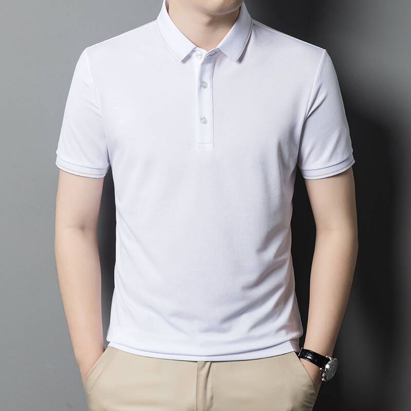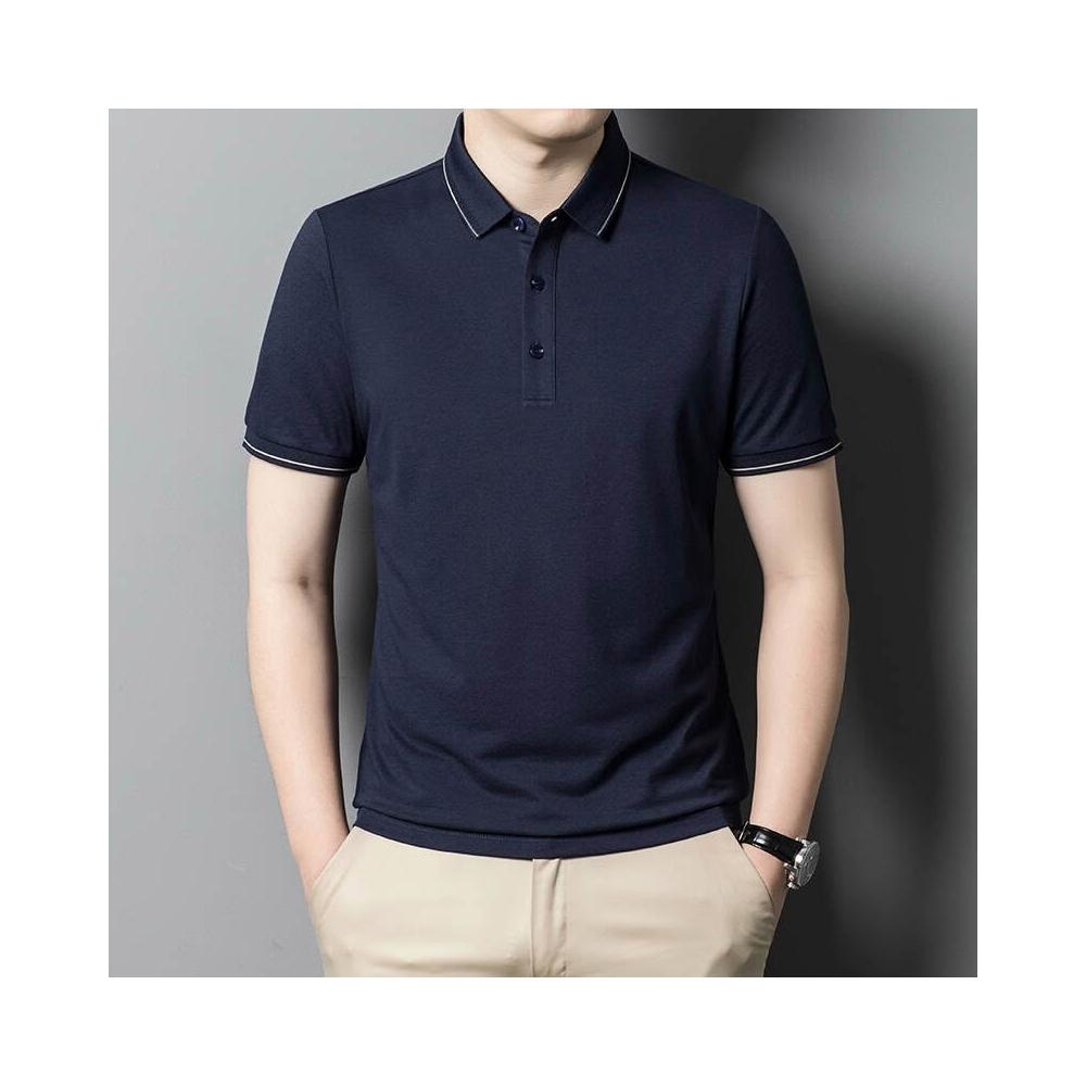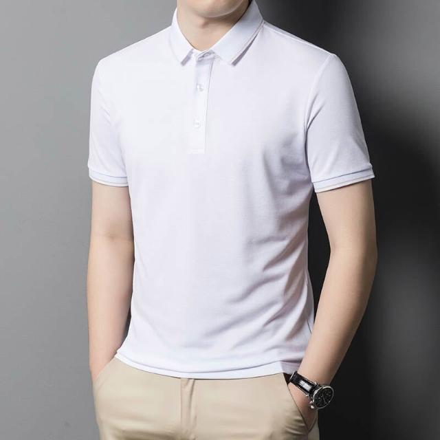 POLO 衫男翻領短袖冰絲涼感透氣商務休閒夏季百搭上衣桑蠶絲純色翻領POLO衫男簡約基礎薄款透氣短袖寬鬆透氣吸濕排汗日常通勤素面短袖上衣