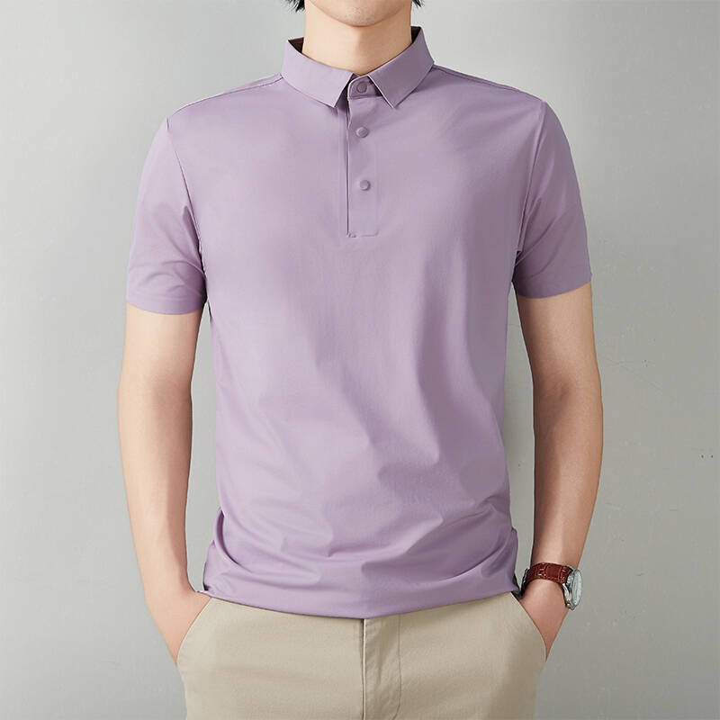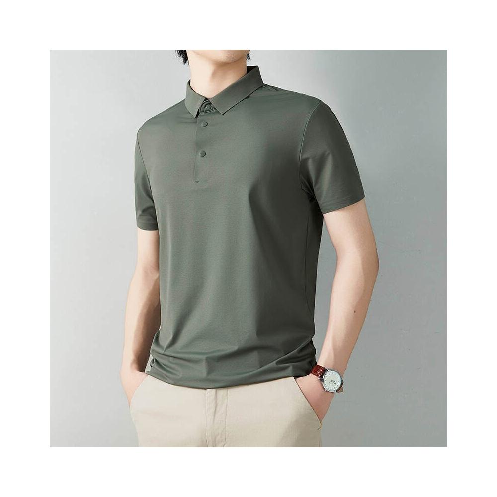 POLO 衫男翻領短袖冰絲涼感透氣商務休閒百搭上衣短袖Polo衫四合扣休閑上衣無縫冰絲韓版修身保羅衫寬鬆透氣吸濕排汗日常通勤素面短袖上衣