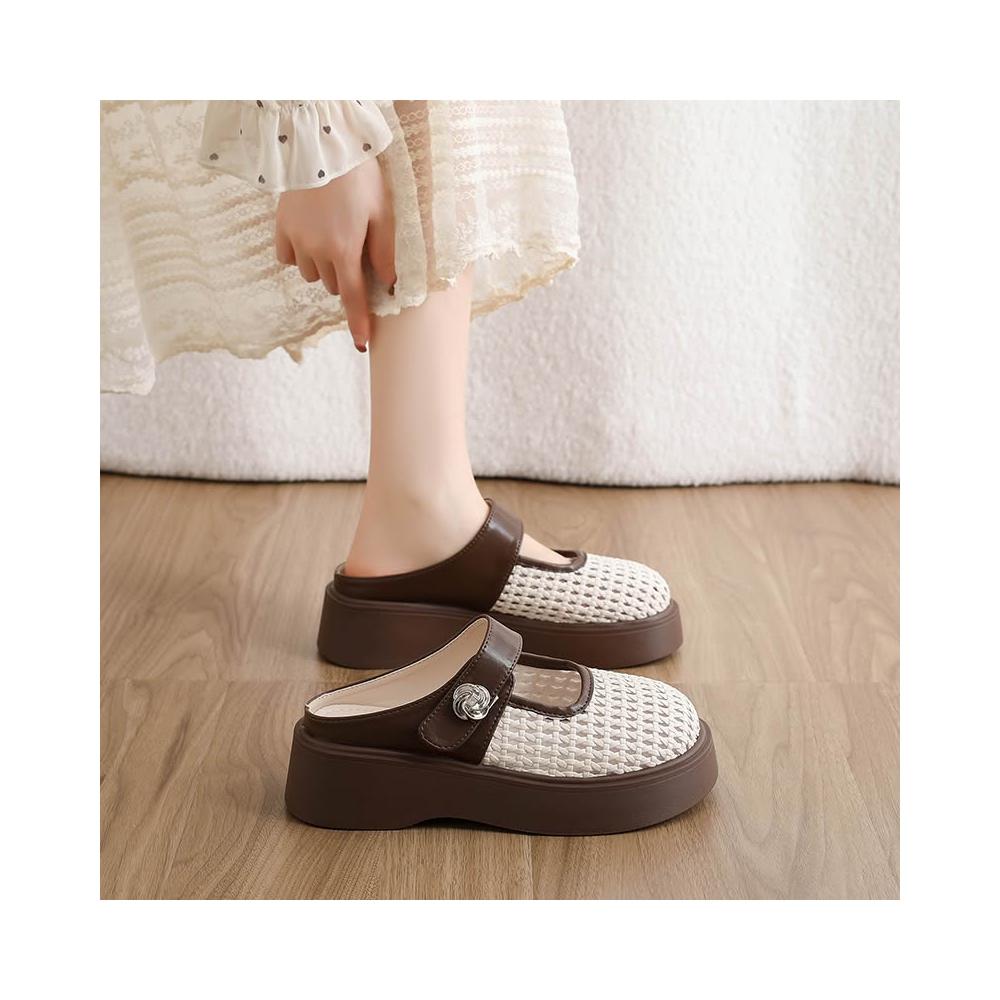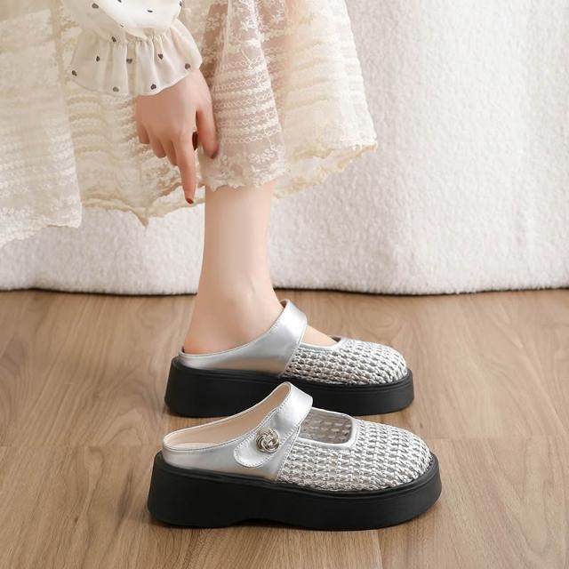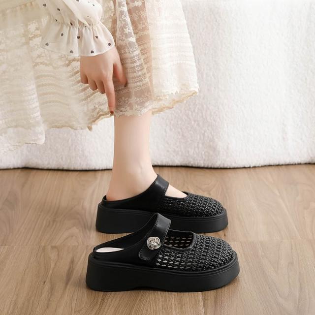瑪麗珍鞋女一字帶平底軟底透氣韓版溫柔風日常通勤百搭單鞋包頭镂空半拖厚底瑪麗珍仙女一腳蹬懶人鞋平底軟底涼鞋涼拖鞋娃娃鞋懶人鞋平底鞋休閒鞋
