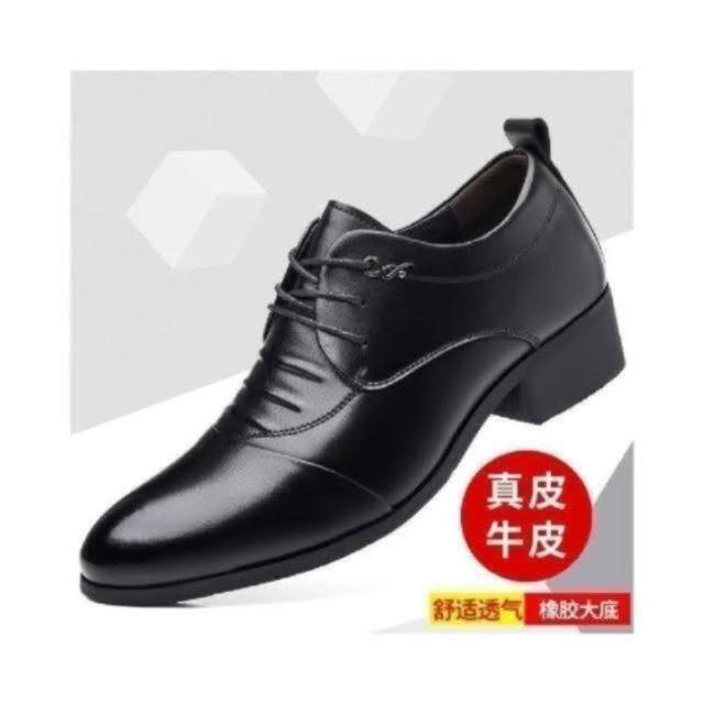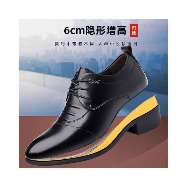 皮鞋男時尚休閑厚底大尺碼男士正裝商務皮鞋輕便潮流鞋低幫英倫尖頭結婚新郎皮鞋黑增高紳士鞋綁鞋帶防水止滑男鞋久站不累腳皮面