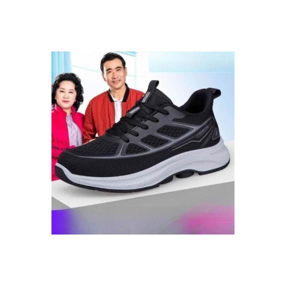 中老年鞋男鞋女鞋橡膠底透氣飛織皮革加寬鞋行特配艾草按摩鞋墊鞋厚底老人鞋大尺碼耐磨久站不累腳爸爸鞋休閒中老年健步鞋緩震輕量運動鞋健行鞋