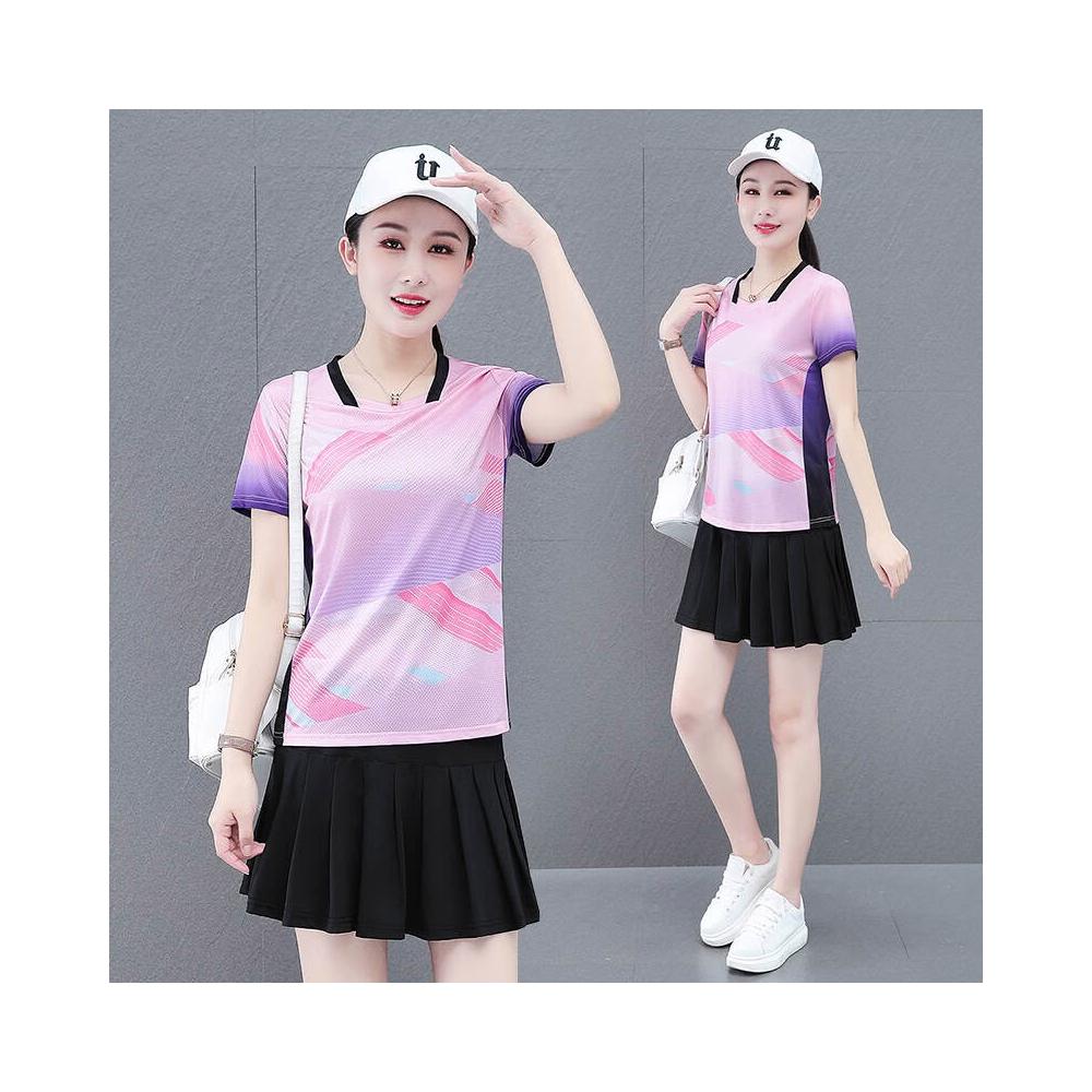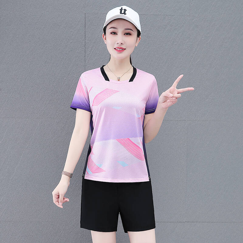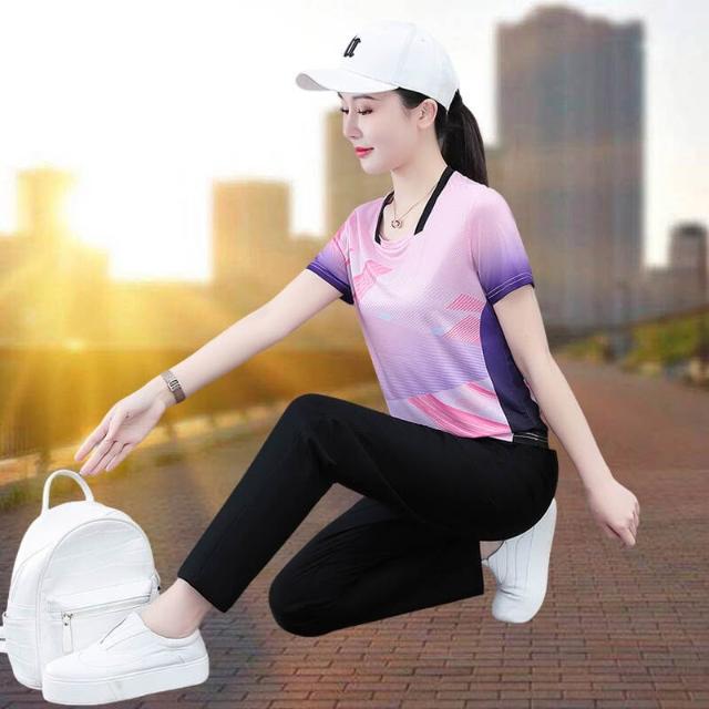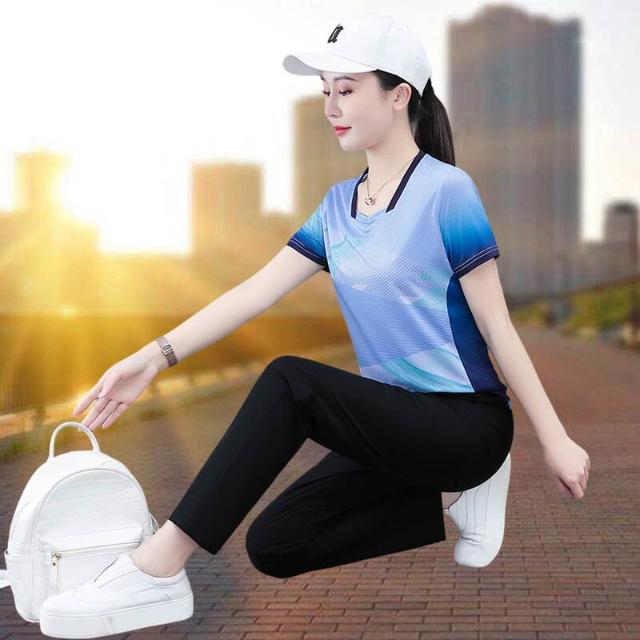 涼感衣冰絲衣套裝運動套裝女冰絲涼感速乾短袖長褲兩件式夏季顯瘦休閒套裝休閑運動冰絲套裝短袖短褲+七分褲+長褲+裙子短袖套裝高爾夫球衫透氣不粘身寬鬆束腳吸濕排汗速乾大尺碼