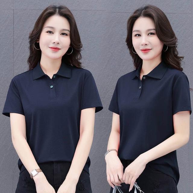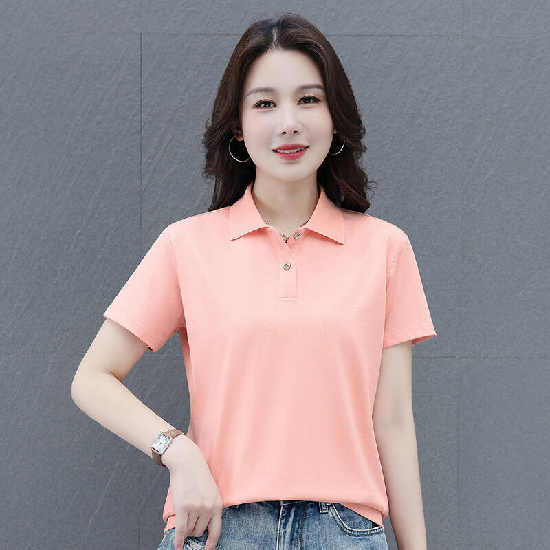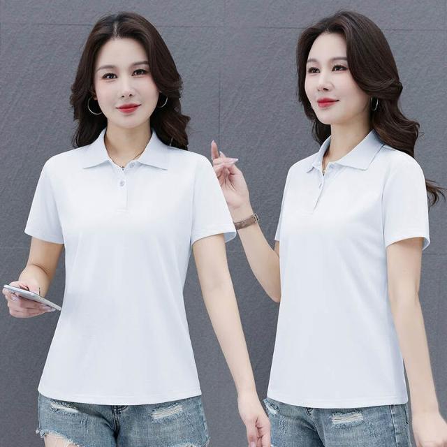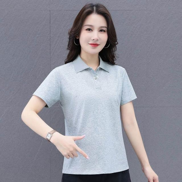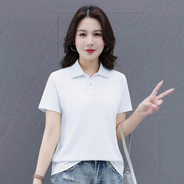 POLO衫冰絲T恤女薄款涼感速乾寬鬆落肩通勤簡約簡約素面柔軟抗皺不變形親膚透氣休閑棉質短袖POLO衫短袖女休閑運動翻領polo衫上衣