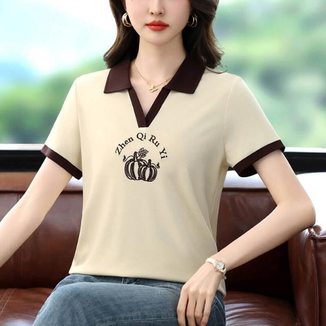 POLO衫冰絲T恤女薄款涼感速乾寬鬆落肩通勤簡約簡約素面柔軟抗皺不變形親膚透氣高品質時尚繡標燙鉆冰絲高雅新款洋氣Polo短袖夏款時尚顯瘦打底Polo衫