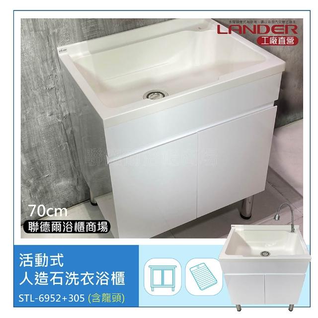 聯德爾70公分-活動式人造石洗衣浴櫃+304不鏽鋼龍頭(洗碗/洗衣/活動式洗手台/人造石檯面/櫃體白色)