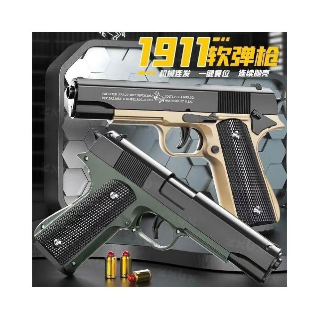 現貨-隔天送達 軟蛋發射器 生存遊戲 機械連發 1911 格洛克仿真兒童軟彈手槍 教具手槍 手動拋殼手槍 科教模型