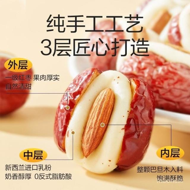 淘甄選好物【約30小包】良品鋪子奶芙棗巴旦木夾心奶棗紅棗新疆解饞零食小喫
