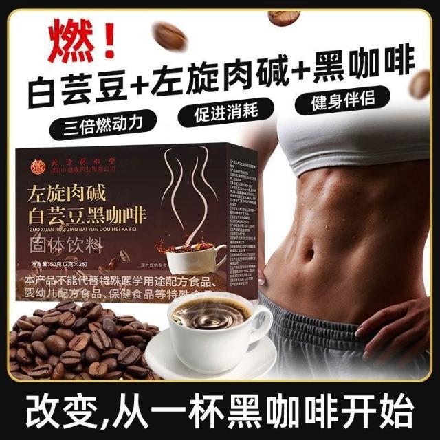 娜娜精選同仁堂朕皇白芸豆左旋肉鹼黑咖啡0脂肪0蔗糖健身速溶黑咖啡粉