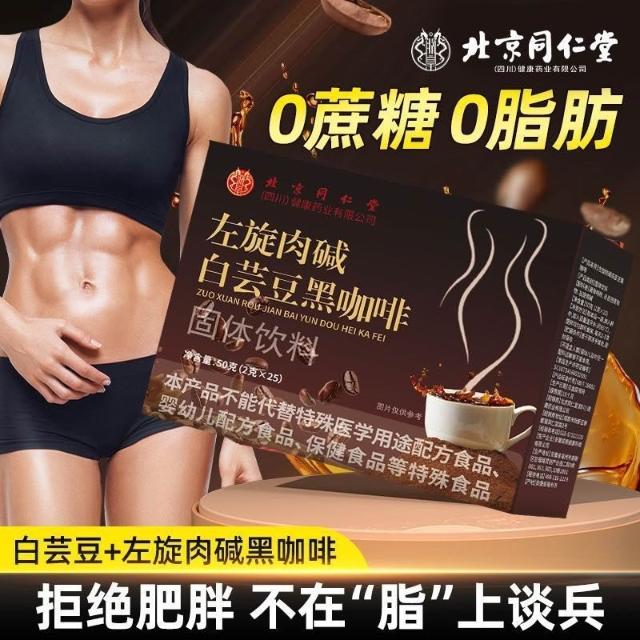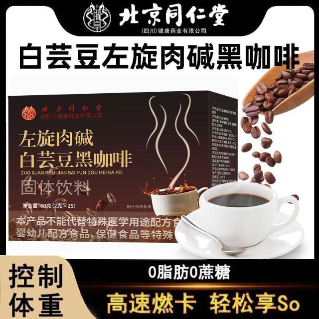 娜娜精選同仁堂朕皇白芸豆左旋肉鹼黑咖啡0脂肪0蔗糖健身速溶黑咖啡粉