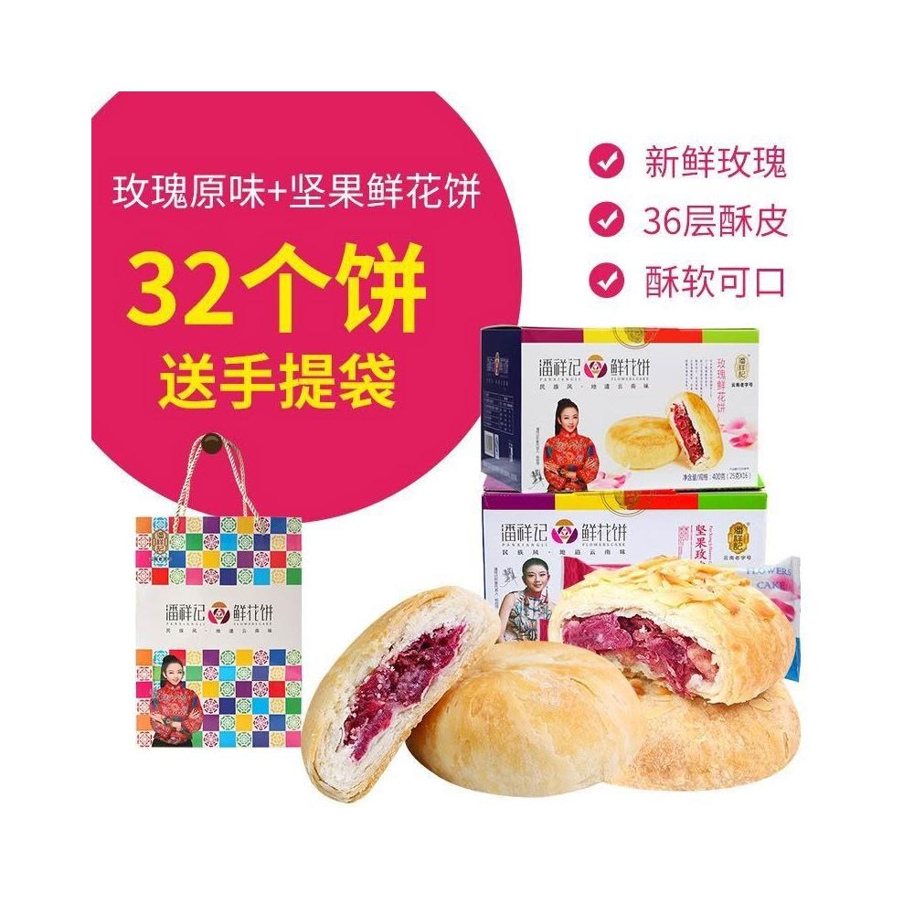 嘴饞精選【潘祥記】鮮花餅雲南特產正宗玫瑰花餅傳統糕點零食休閒食品禮盒裝