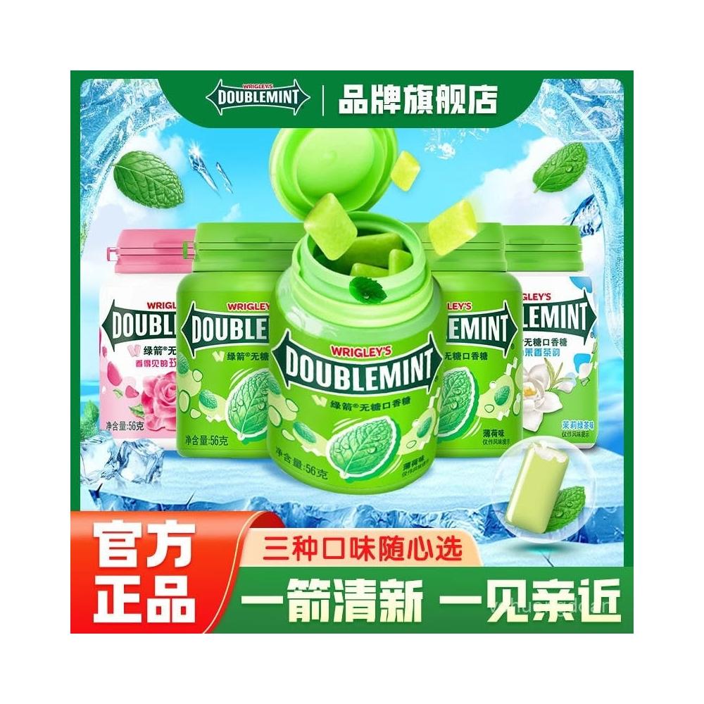 心心相印 綠箭口香糖40粒*3瓶裝無糖新陞級綠茶原味薄荷味清新糖果