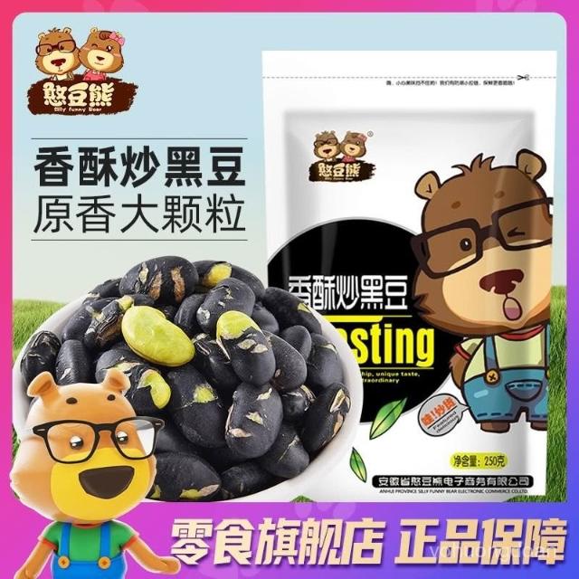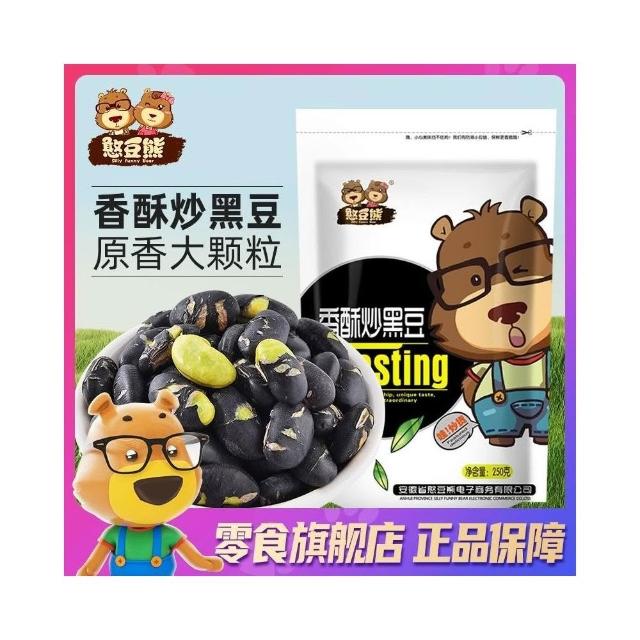 心心相印 憨豆熊香酥炒黑豆250g*2大袋卽食炒熟黑豆子綠芯特酥休閒零食炒貨