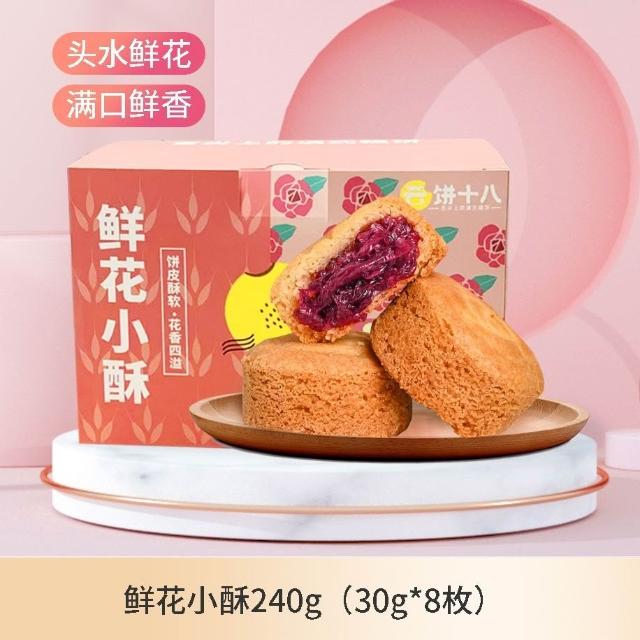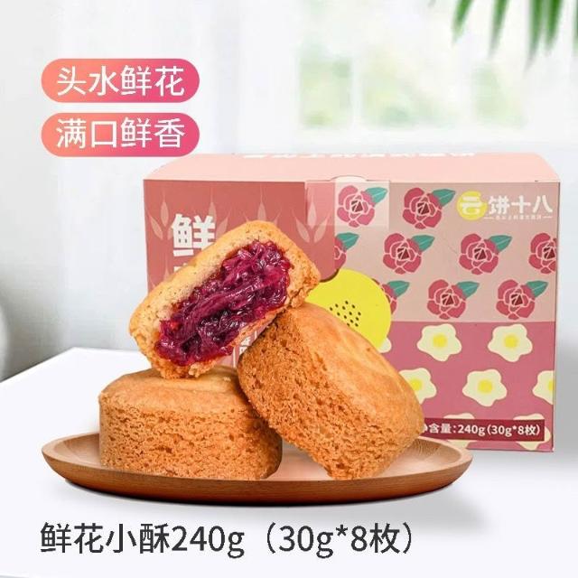 娜娜精選玫瑰鮮花餅雲南特產零食小吃鮮花小酥月餅傳統糕點心240g禮盒裝