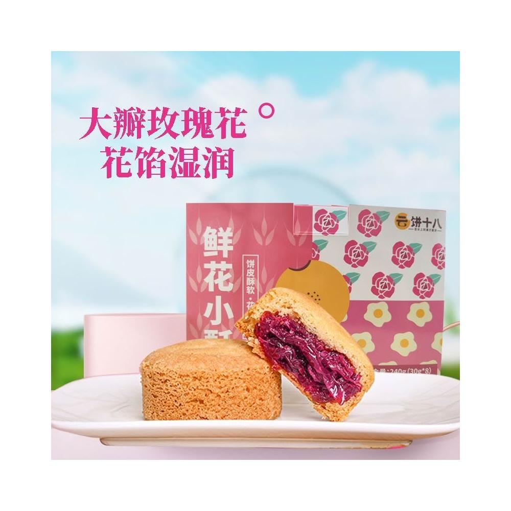 娜娜精選玫瑰鮮花餅雲南特產零食小吃鮮花小酥月餅傳統糕點心240g禮盒裝