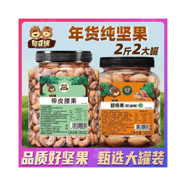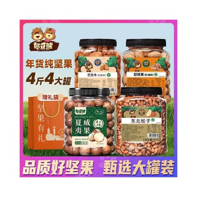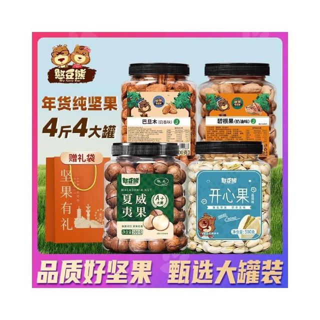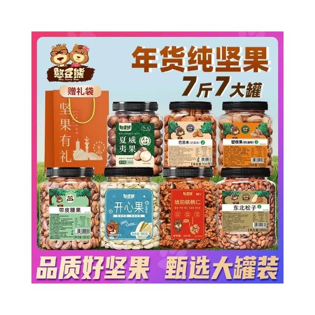 心心相印 憨豆熊堅果組閤7斤裝堅果禮盒開心果幹果零食送長輩整箱年貨500g