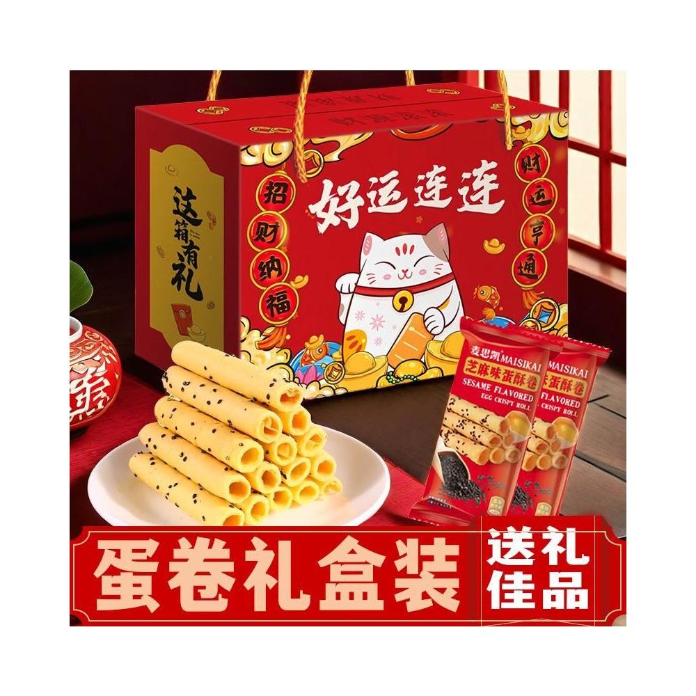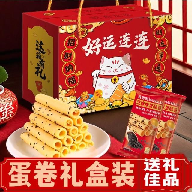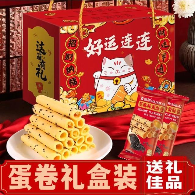 年貨禮盒新年伴手禮芝麻蛋卷禮盒年貨送長輩必備休閒零食獨立包裝