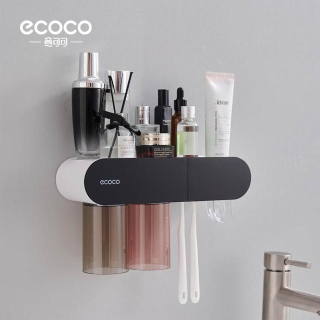 ecoco意可可透明磁吸式牙刷置物架 壁掛式 家庭 漱口杯 杯架 牙刷 置物架 電動 免打孔 牙具 牙缸 套裝 掛架