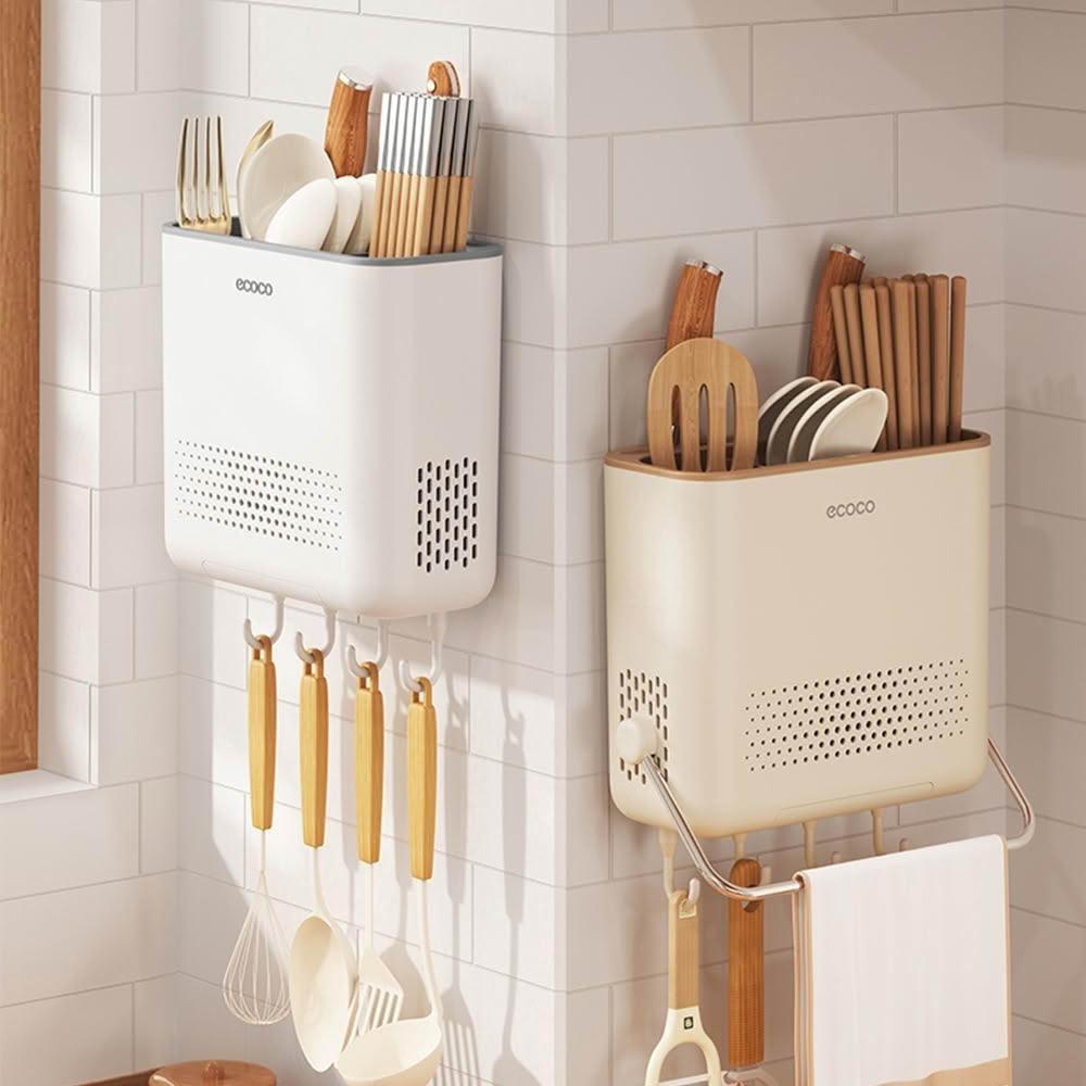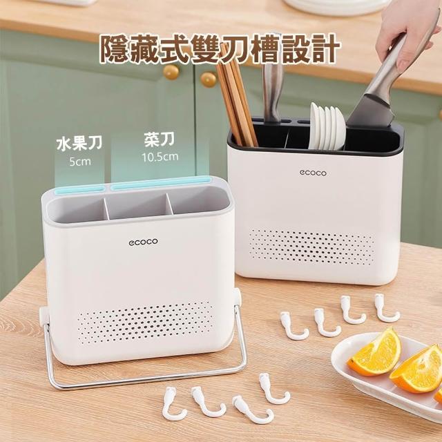ecoco意可可壁掛筷子筒 筷子收納盒 壁掛式 刀架 廚房 置物架 家用 免打孔 刀具 筷子筒 一體 收納架