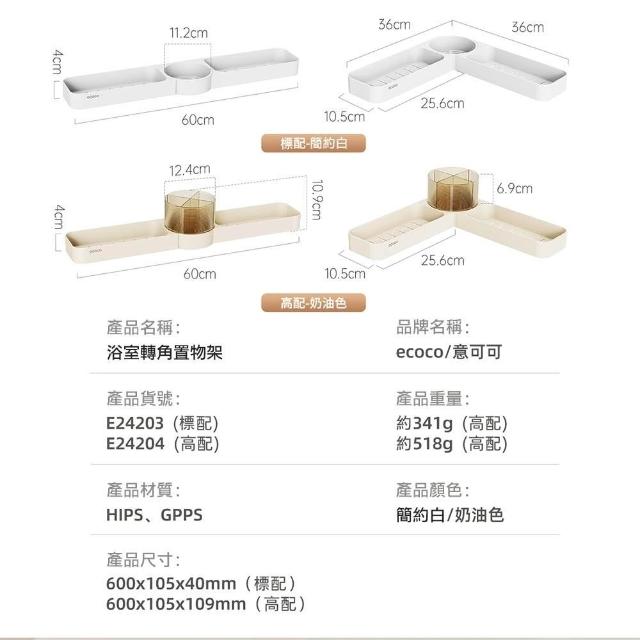 ecoco意可可浴室轉角置物架(高配款)限宅配 轉角收納架 壁掛廚房墻角架 廁所置物架 浴室收納櫃 牆面收納架 衛生間收納 免打孔