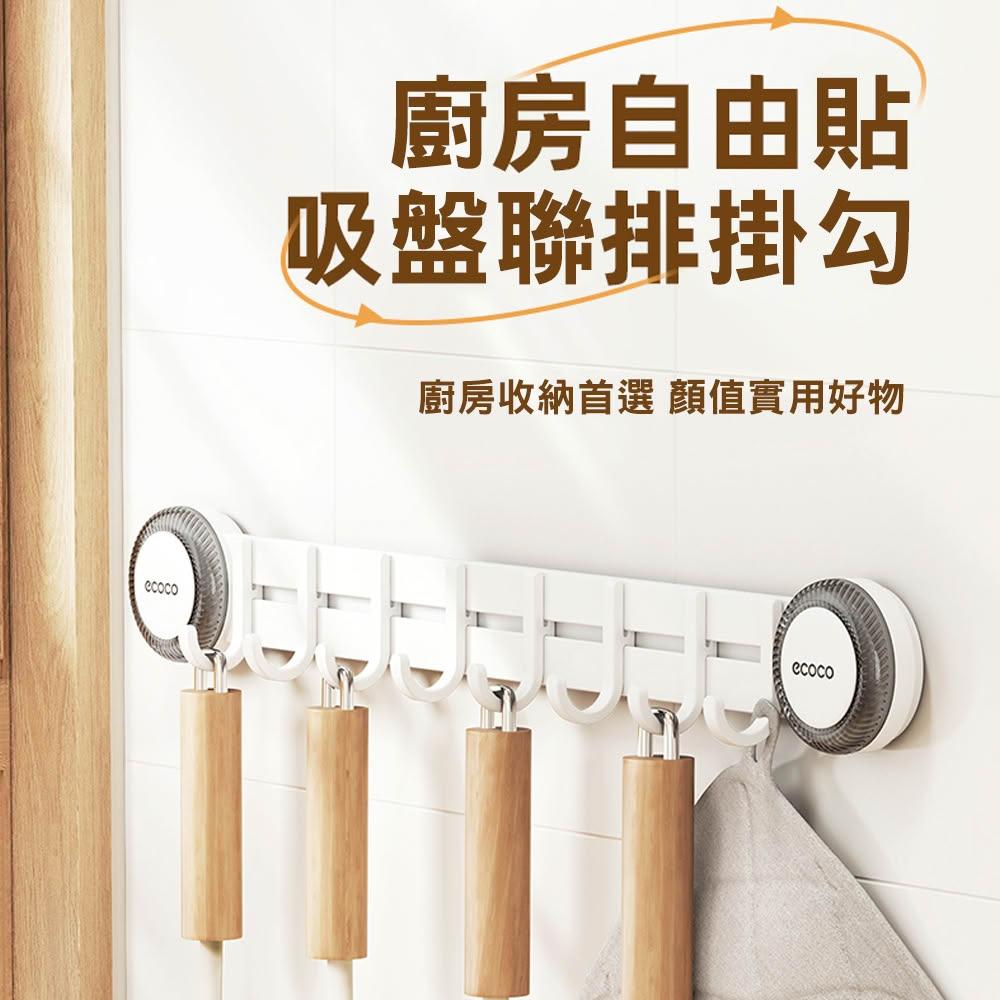 ecoco意可可吸盤連排掛勾(6勾) 吸盤 廚房 掛勾架 免打孔 掛桿 壁掛 廚具掛 勺子 鏟子 置物架 收納架