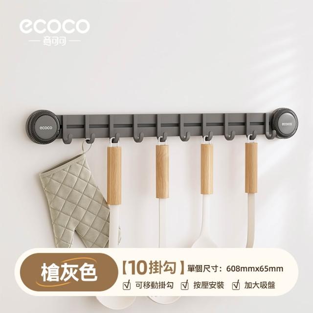 ecoco意可可吸盤連排掛勾(10勾)限宅配 免打孔 掛桿 勺子 鏟子 壁掛 廚具掛吸盤 廚房 掛勾架 置物架 收納架
