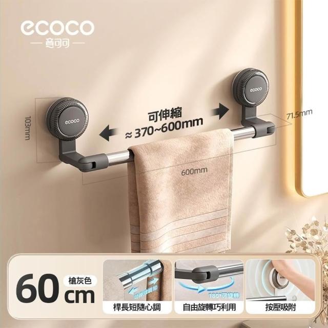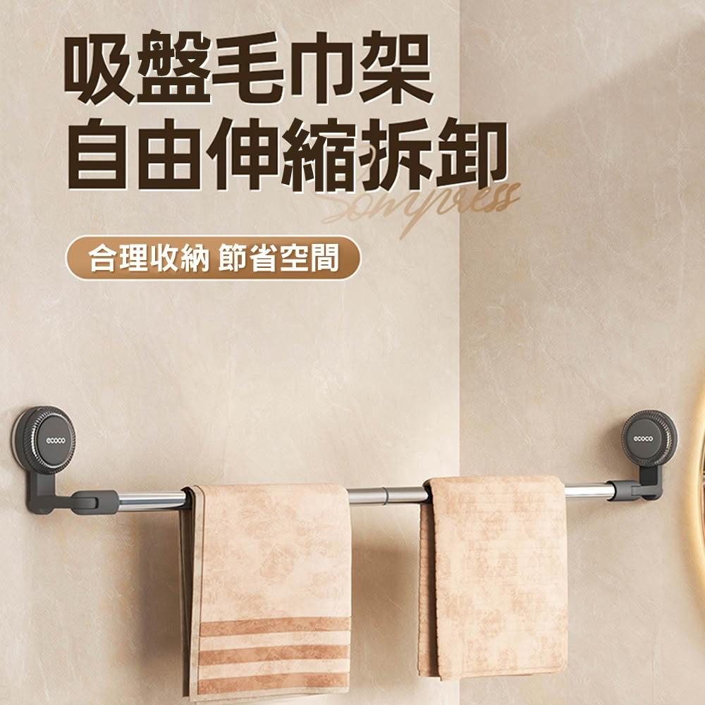 ecoco意可可吸盤伸縮毛巾架(60cm) 吸盤 毛巾架 衛生間 免打孔 浴室 伸縮桿 浴巾 收納掛 架子 毛巾掛桿