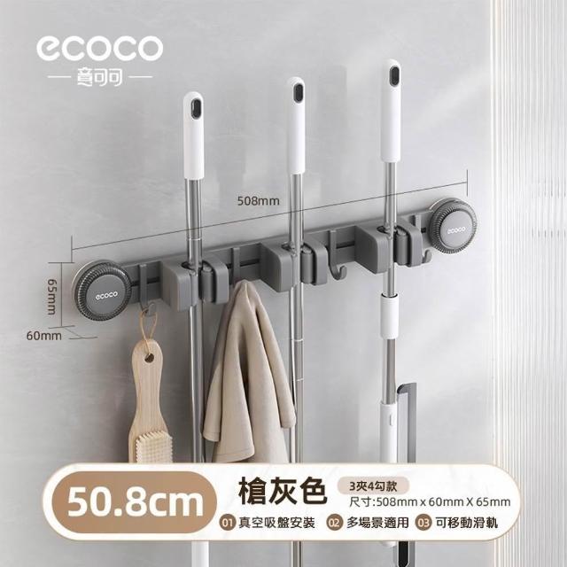 ecoco意可可吸盤連排拖把架(3夾4勾/4夾5勾)限宅配 壁掛 掃把吸盤 免打孔 拖把夾 掛勾 衛生間 隨意移動 重覆使用