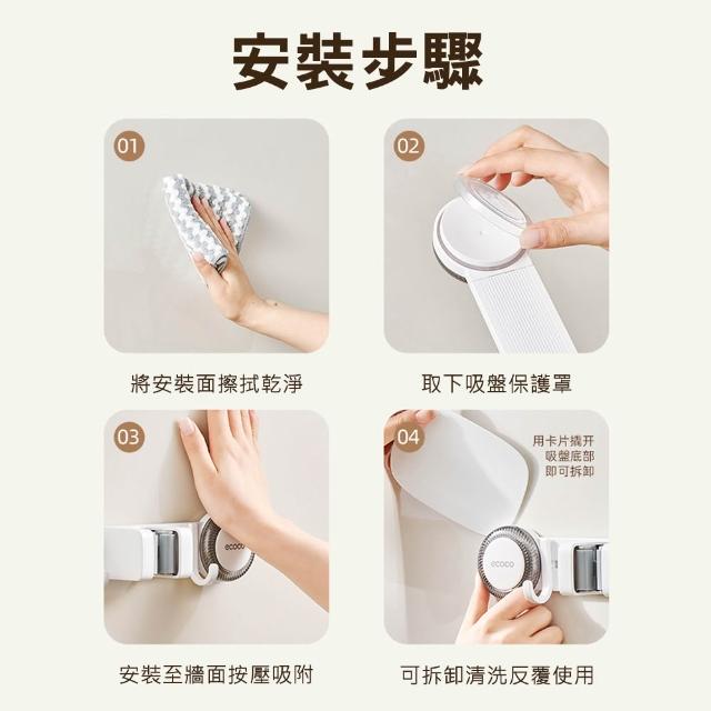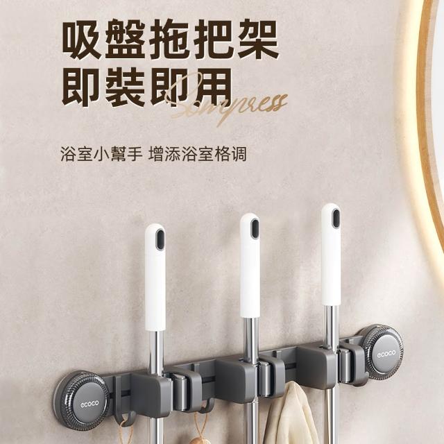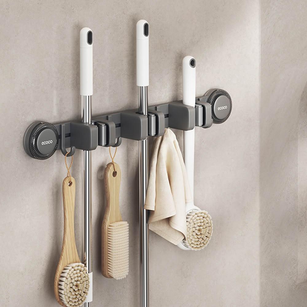 ecoco意可可吸盤連排拖把架(3夾4勾/4夾5勾)限宅配 壁掛 掃把吸盤 免打孔 拖把夾 掛勾 衛生間 隨意移動 重覆使用