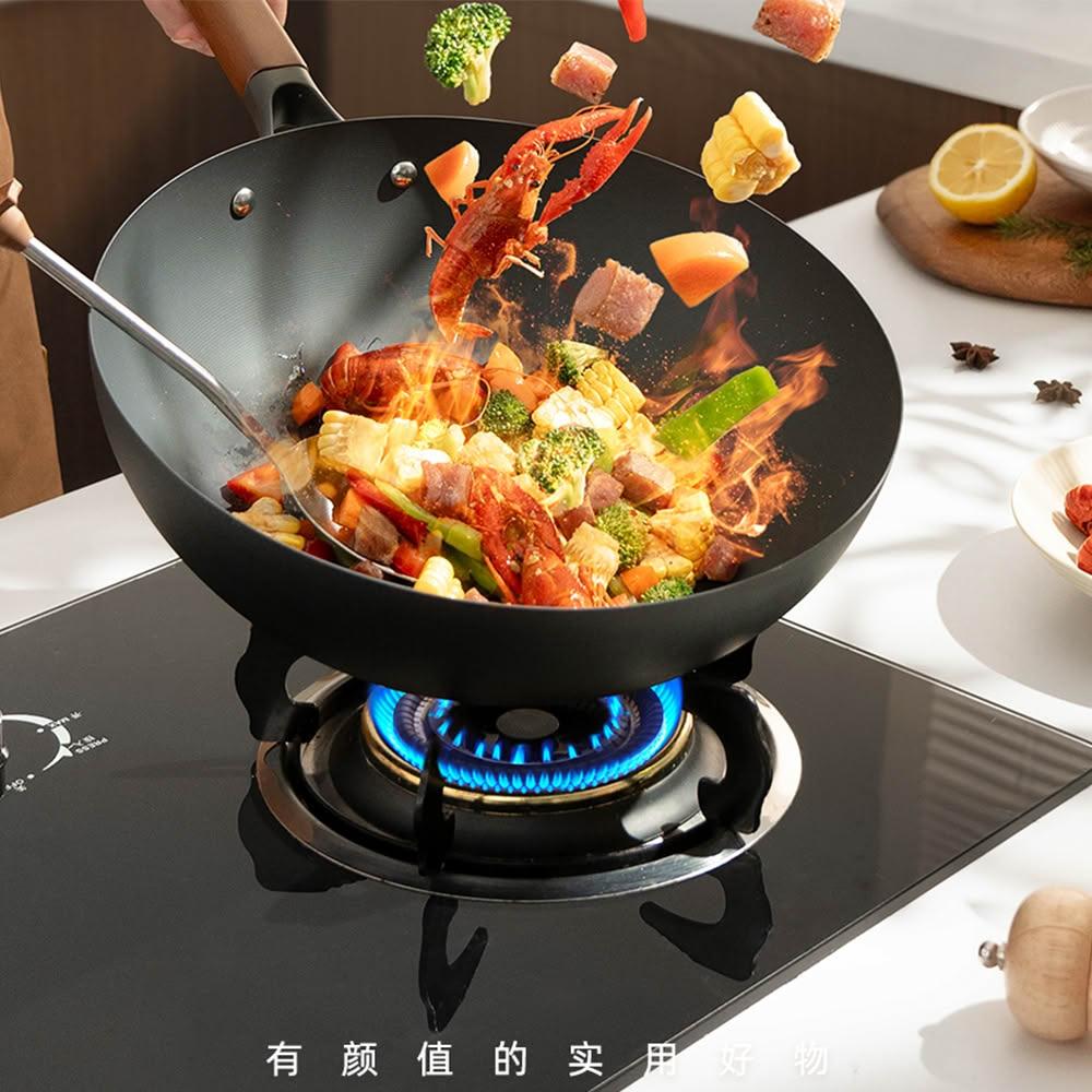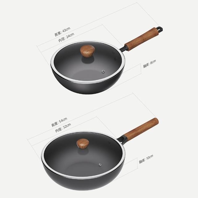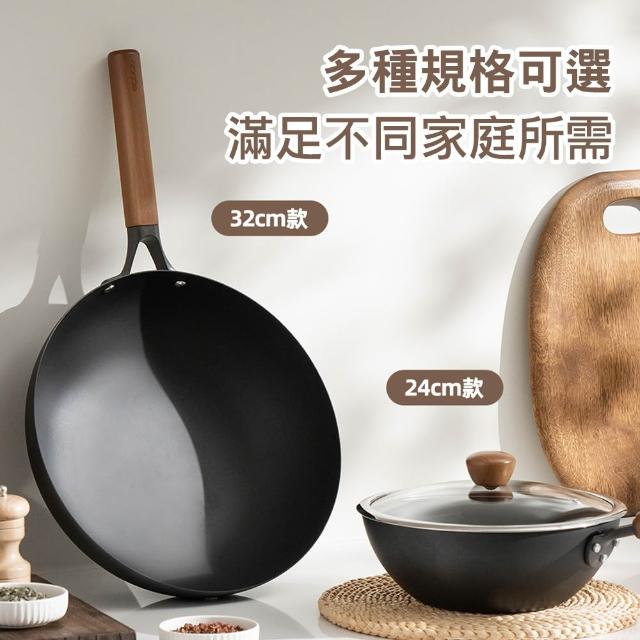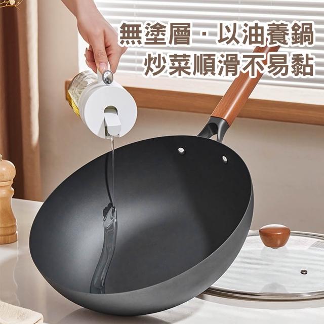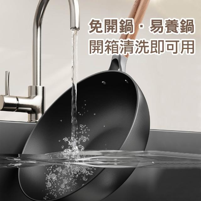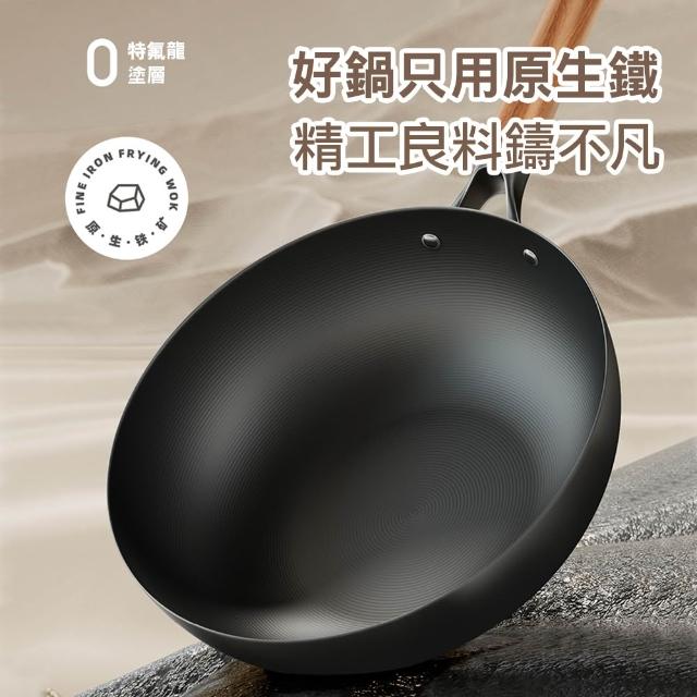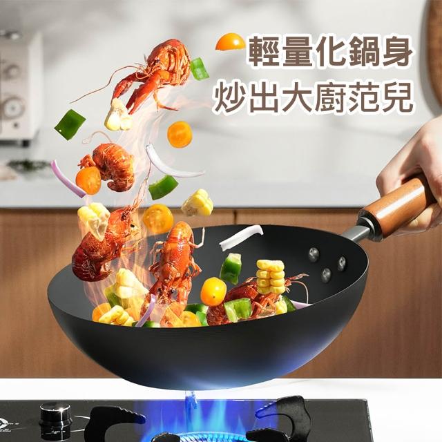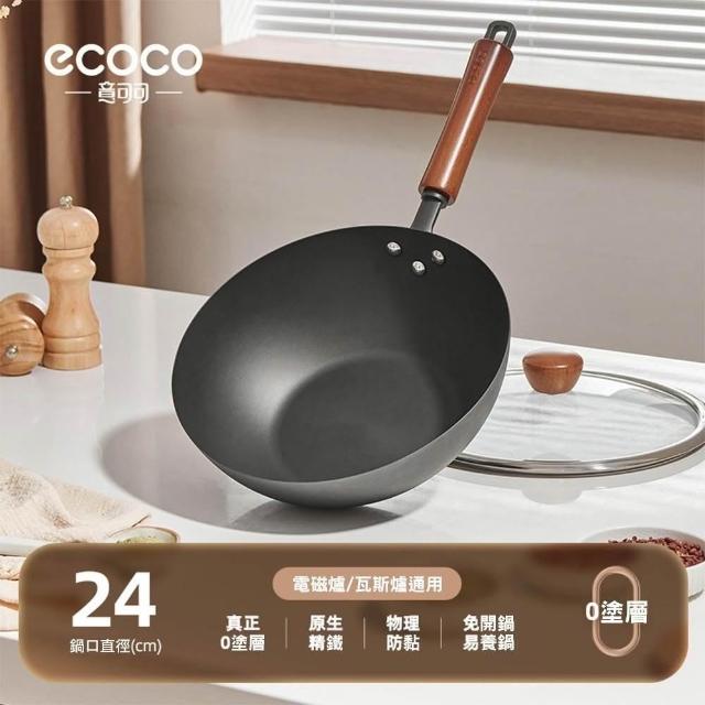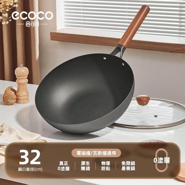 ecoco意可可無塗層精鐵鍋 炒菜鍋 鐵鍋 免開鍋 家用 無塗層 不易黏鍋 電磁爐 瓦斯爐 專用 輕量化 櫸木柄