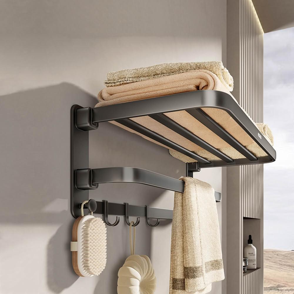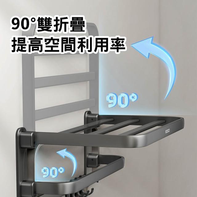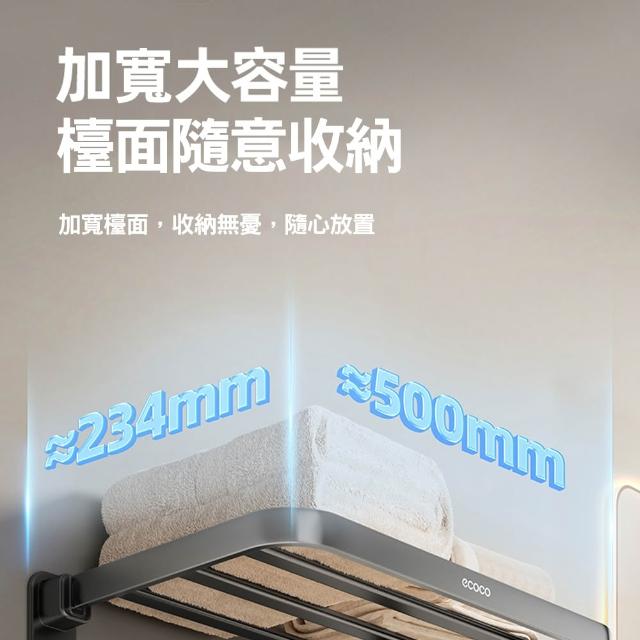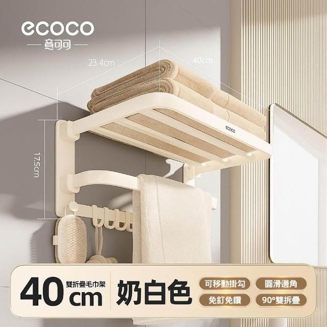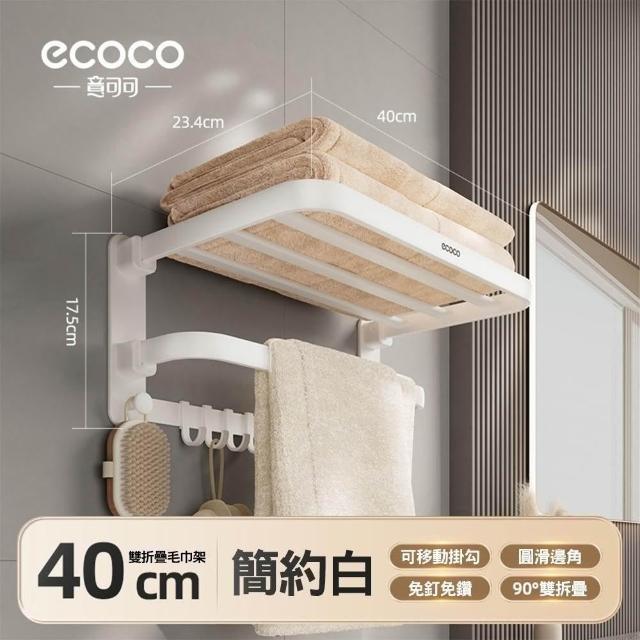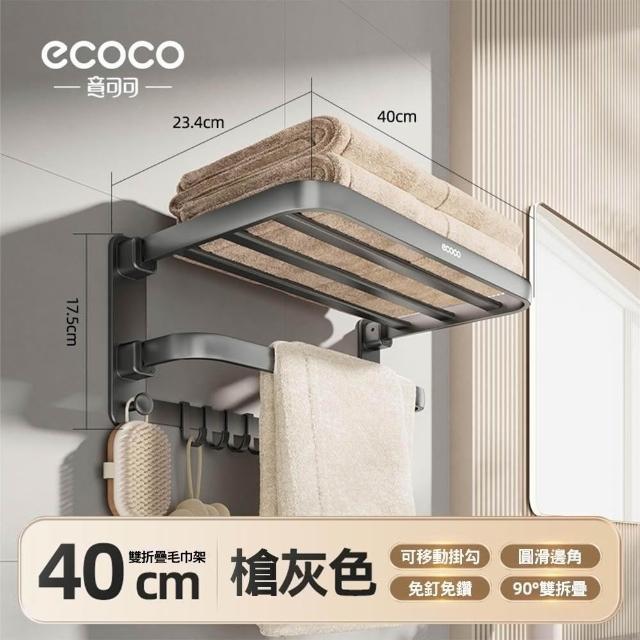 ecoco意可可五金折疊毛巾架40cm 毛巾架 免打孔 衛生間 浴室 置物架 廁所 浴巾架 一體 太空鋁架 雙折疊