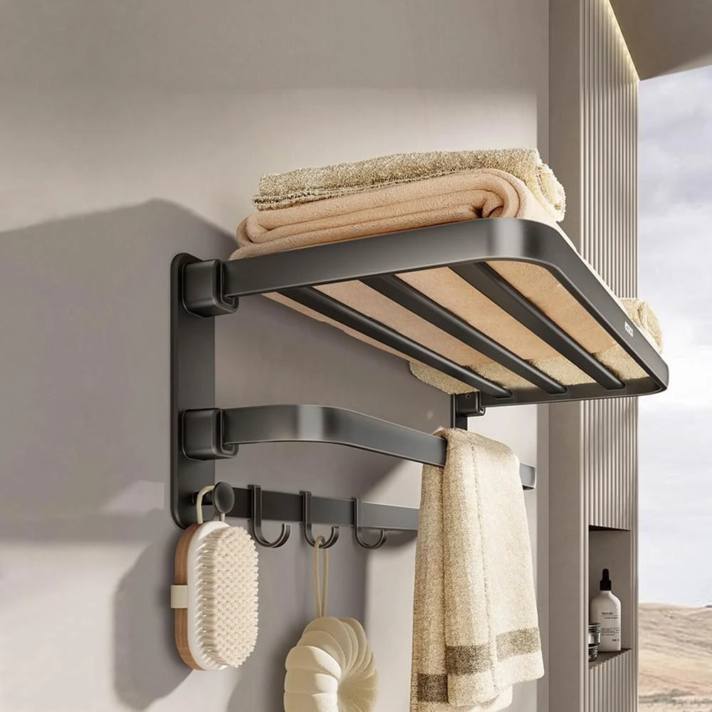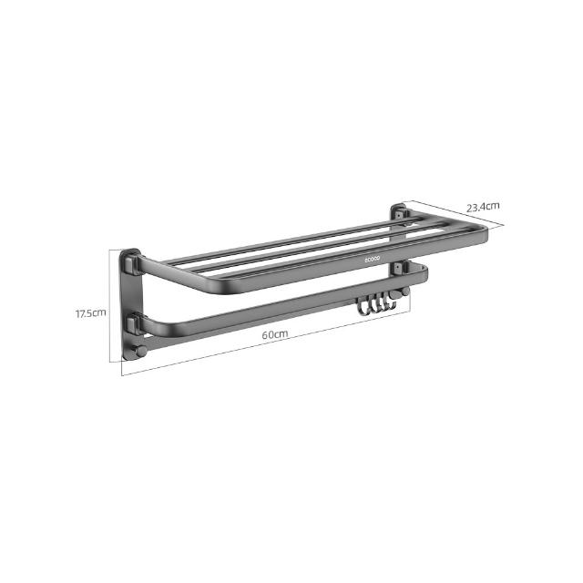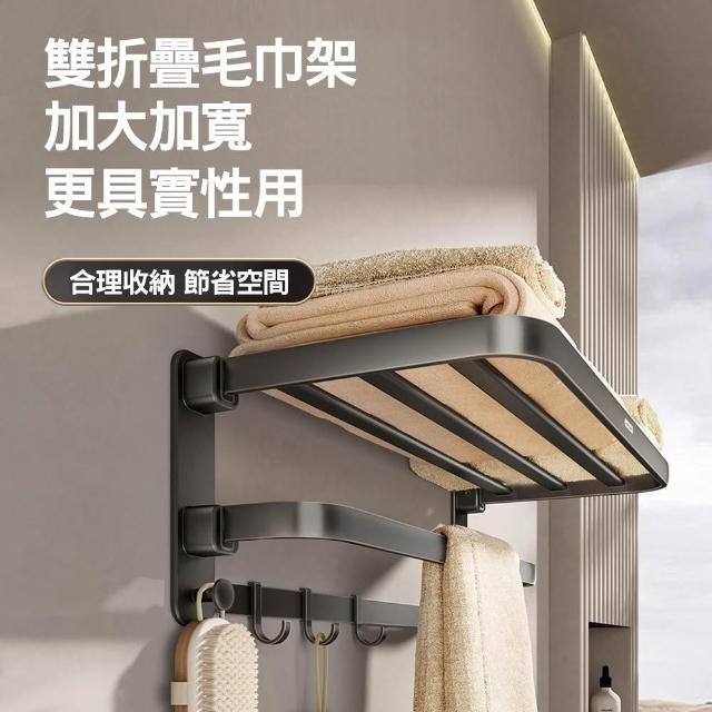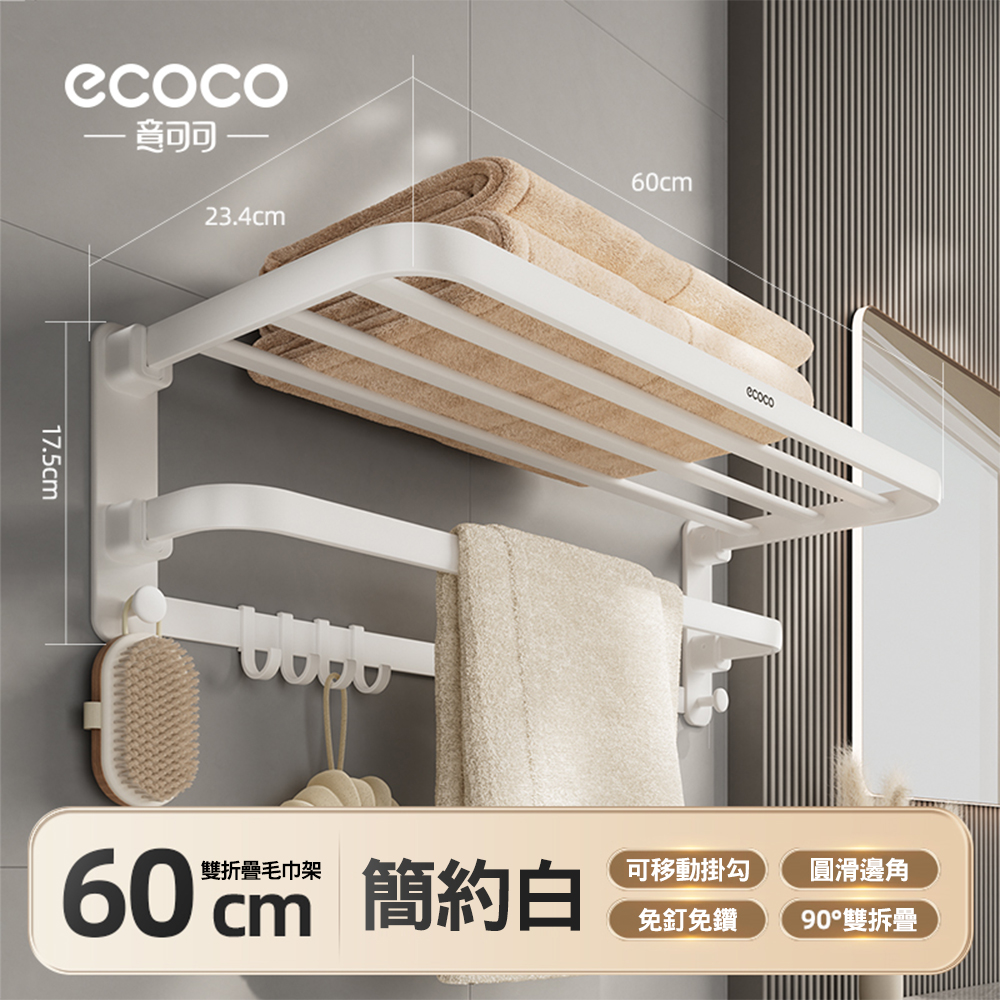 ecoco意可可五金折疊毛巾架60cm(限宅配) 毛巾架 免打孔 衛生間 浴室 置物架 廁所 浴巾架 一體 太空鋁架 雙折疊