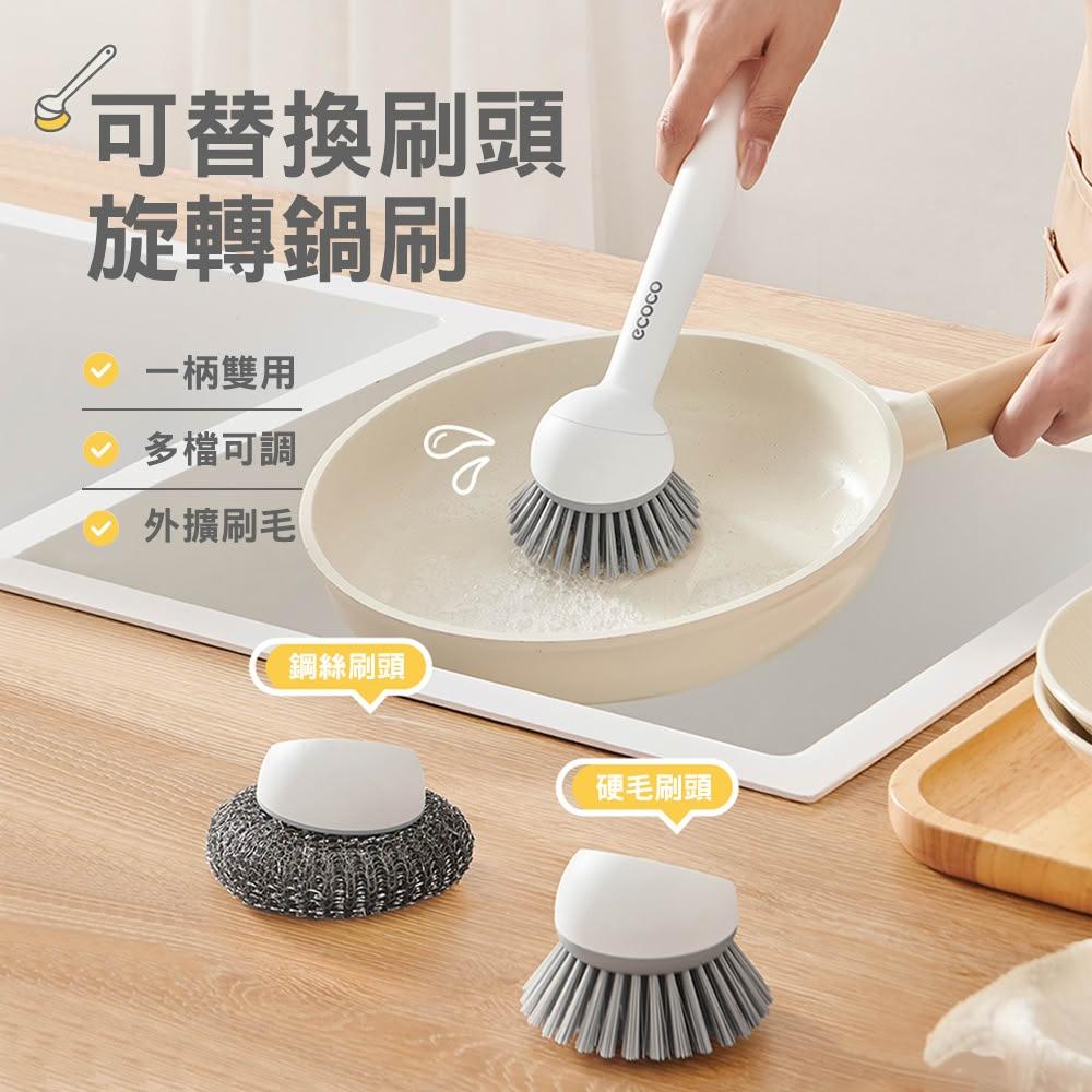 ecoco意可可可旋轉長柄鍋刷(單頭款) 刷鍋 神器 廚房專用 洗碗 洗鍋 清潔刷 家用 長柄鍋刷 去污刷 鍋刷子
