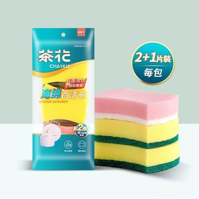 CHAHUA茶花海綿菜瓜布 海綿百潔布 家用 洗碗布 刷碗 廚房 不易沾油 金剛砂鍋 加厚 海綿 抹布